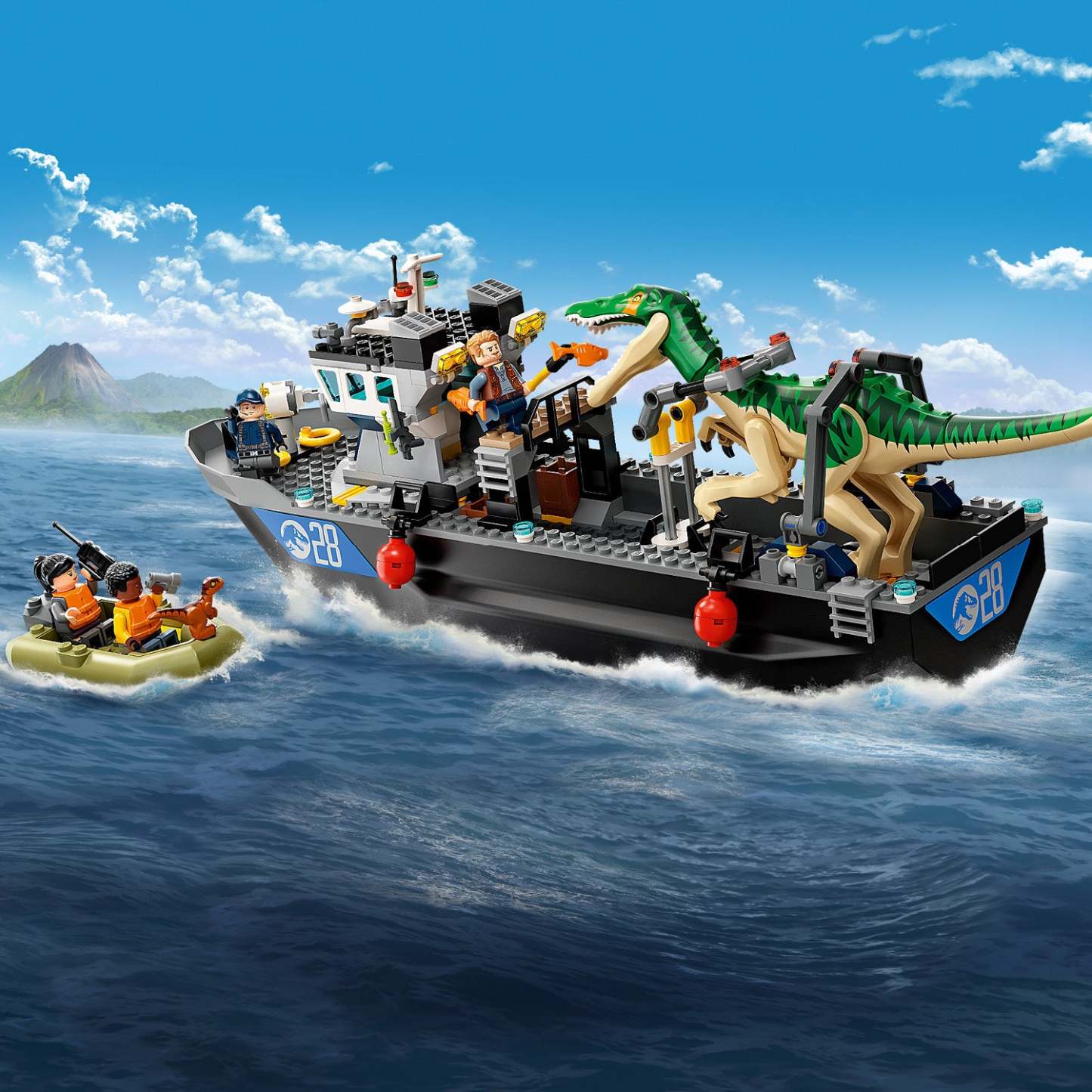 - Kids can role-play an exciting Baryonyx Dinosaur Boat Escape with this awesome LEGO® Jurassic World toy playset (76942), featuring a cool, buildable boat that floats – even with a dinosaur on board!