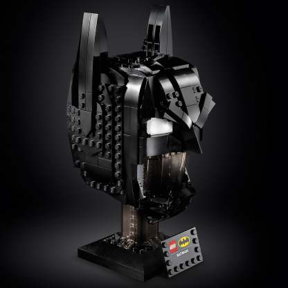 - This authentic LEGO® brick recreation of the iconic Batman™ helmet includes transparent pieces to represent the face and a stylish fact plaque attached to a sturdy base.