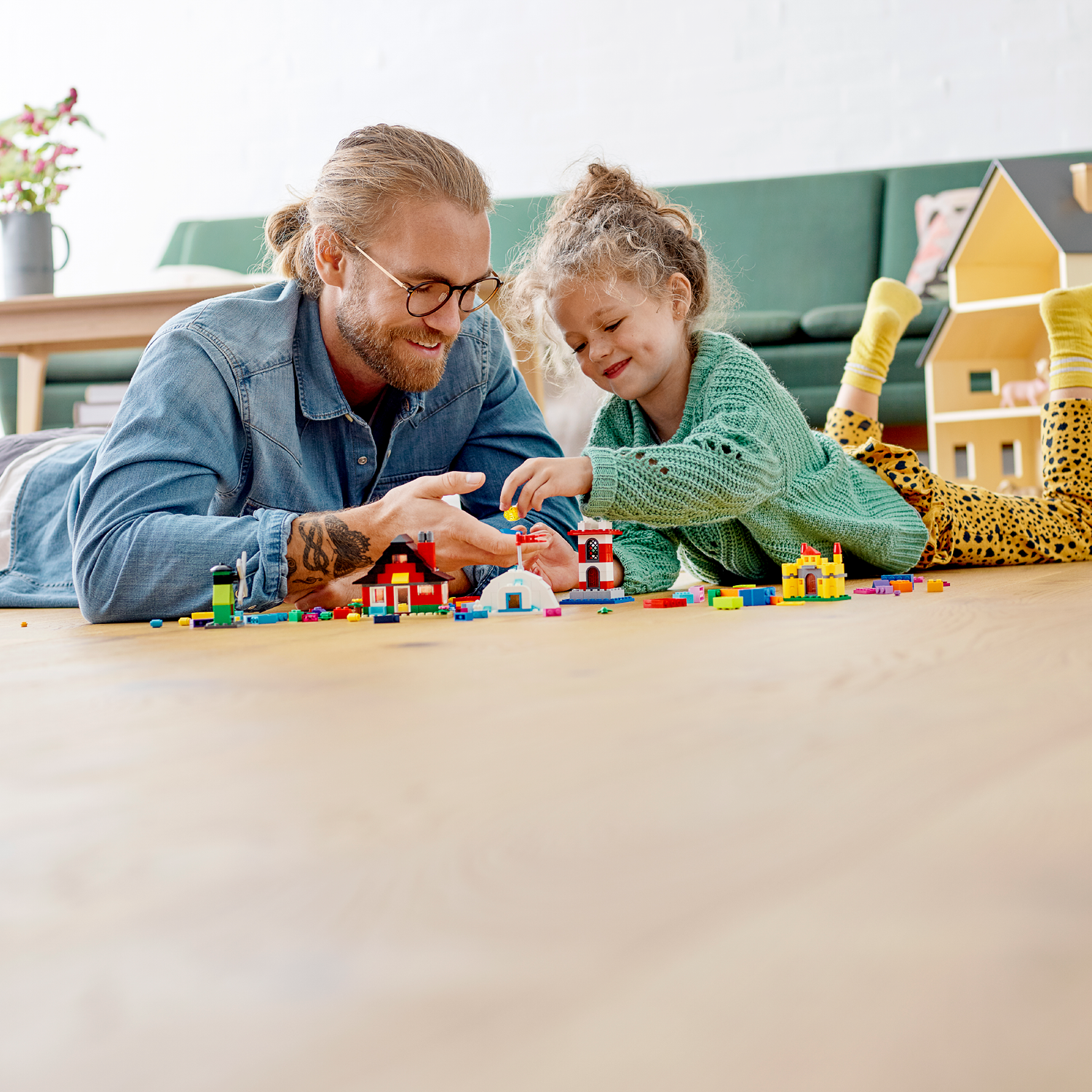 Children understand the importance of ‘home’ very early in their lives – so this LEGO® Classic Bricks and Houses set is an ideal way to introduce them to creative construction. As kids build, play and build again, they develop valuable skills that last a lifetime. Start kids building with this fun selection of LEGO houses Boys and girls aged 4 and up will love to assemble and play with these 6 easy-to-build LEGO models. Theres a family home, a lighthouse, an igloo, a castle, a small house and a windmill to build. Simple instructions and cool features, such as turning sails on the windmill, make construction fast and fun. After making the models, there are even more bricks and pieces left for kids to create a dream home of their own. Develop key skills with LEGO Classic building toys LEGO Classic sets put ideas and inspiration into kids hands. Fun models and simple guides get them started. As they discover the joy of constructing creations of their own, they acquire skills that are key to future success.