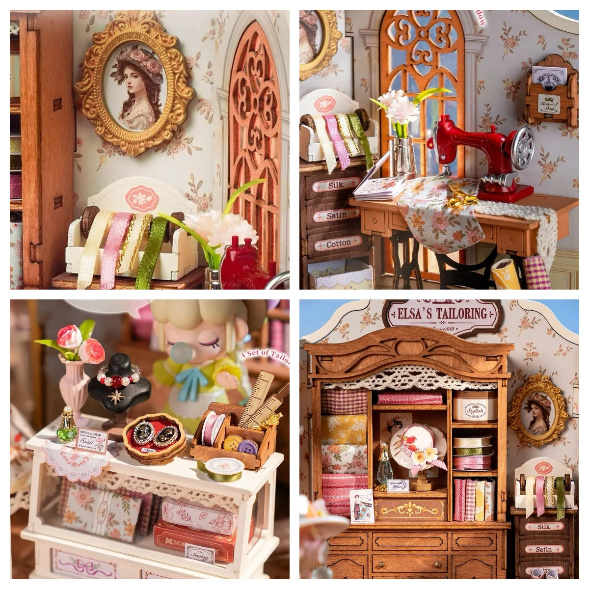 A delicate DIY miniature house / book nook for sewing lovers and collectors—handmade beauty for your shelf.