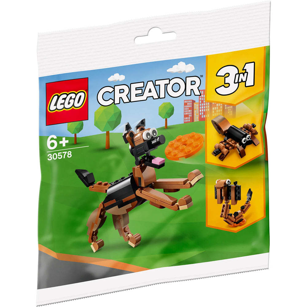 Treat an animal fan to a LEGO® Creator 3in1 polybag featuring a cute German Shepherd dog, or rebuild it into a scary cobra snake or toy spider.