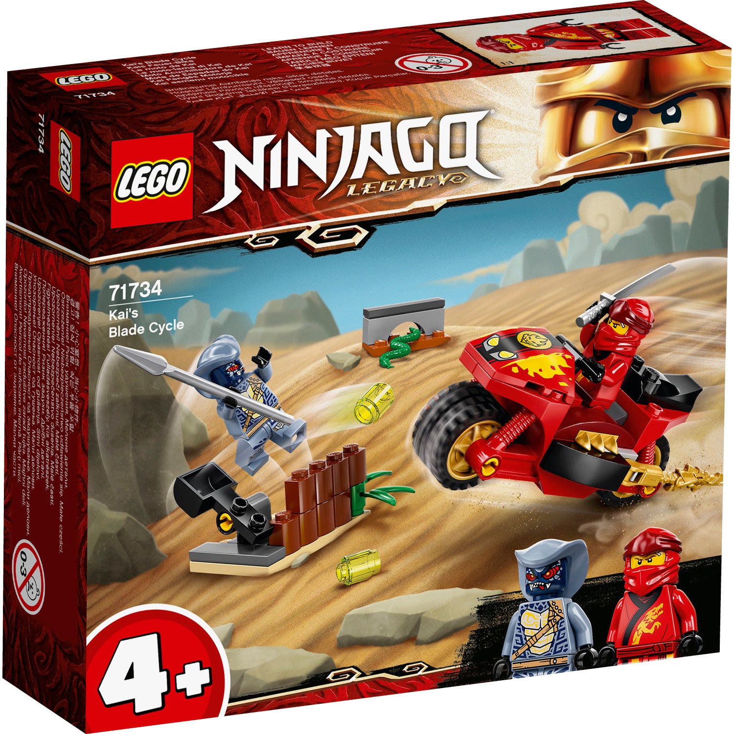 - LEGO® NINJAGO® Kai’s Blade Cycle (71734) set helps kids learn how to build before they recreate ninja adventures with a motorcycle toy and a catapult toy that launches objects.