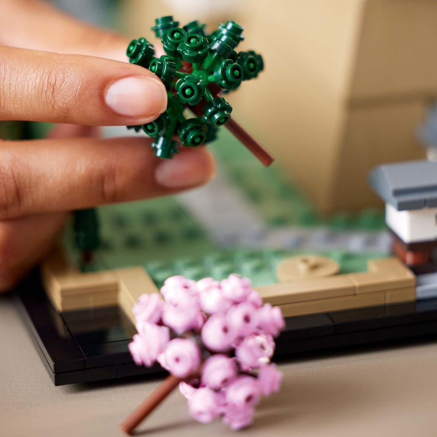 - Choose your season – The model features a LEGO® brick interpretation of the surrounding gardens, including 4 buildable cherry trees, 2 with green foliage and 2 with pink cherry blossoms