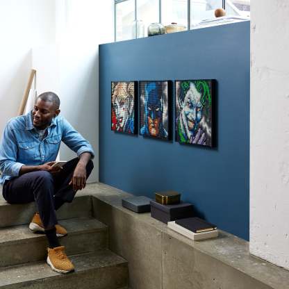 - Designed for DC Universe fans – Showcase the talent of comic book legend Jim Lee by creating 1 of 3 portraits of Batman™, The Joker™ or Harley Quinn™ in LEGO® tiles