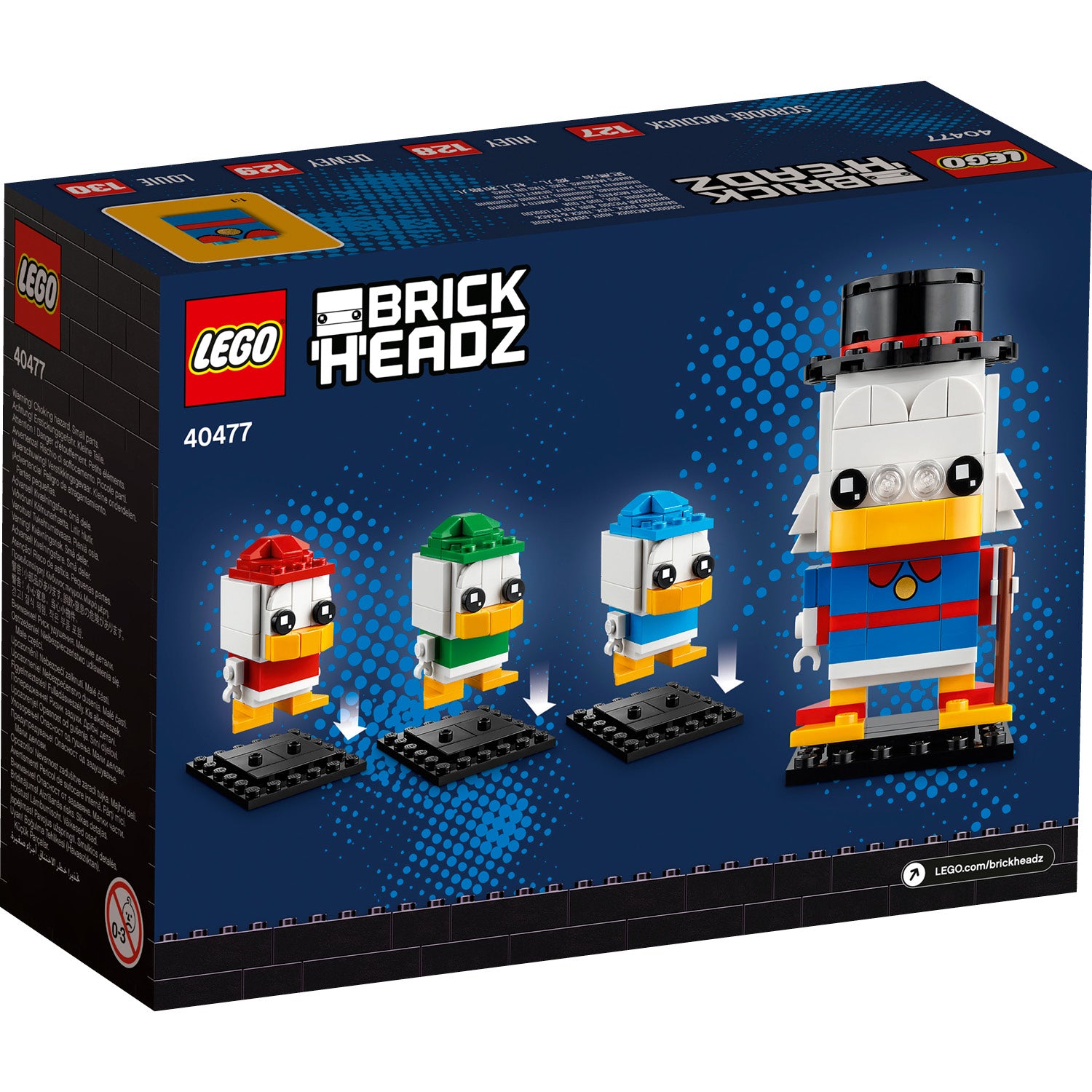 - Collectible construction set featuring cool LEGO® BrickHeadz™ interpretations of Disney’s iconic Scrooge McDuck and his great-nephews, ducklings Huey, Dewey and Louie.