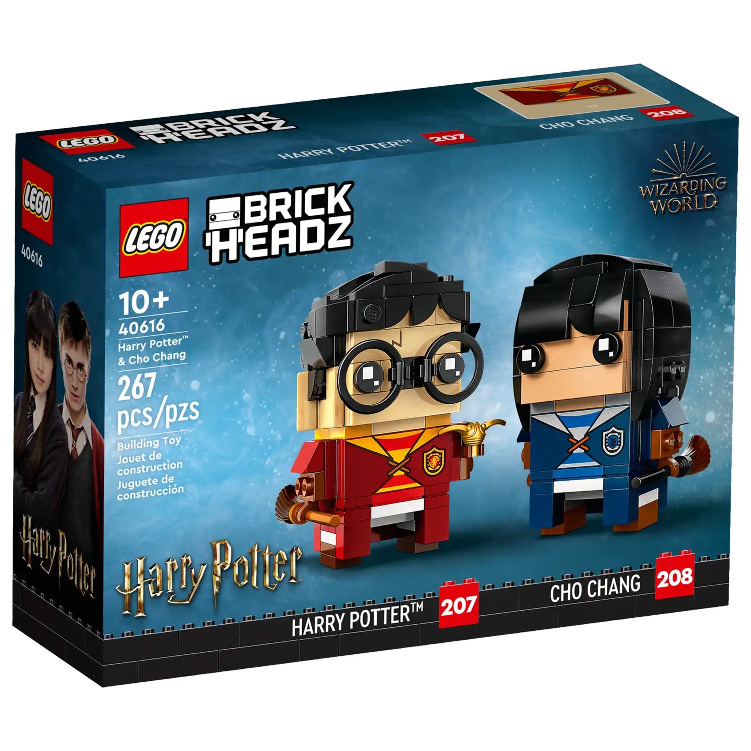 - Harry Potter™ & Cho Chang in LEGO® BrickHeadz™ style (40616) – Build the 2 characters in their house Quidditch™ uniforms and display them holding the broomstick and Golden Snitch™ elements