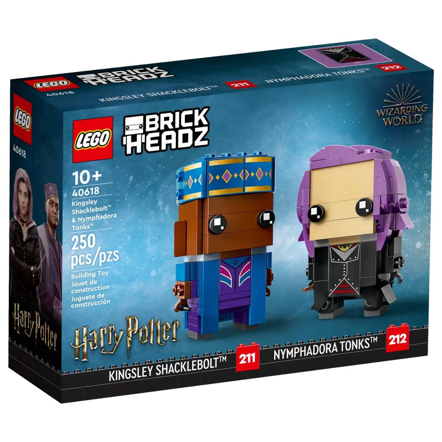 - Brick-built Kingsley Shacklebolt™ & Nymphadora Tonks™ figures (40618) – Recreate the look and iconic outfits of 2 popular Harry Potter™ characters in LEGO® BrickHeadz™ style