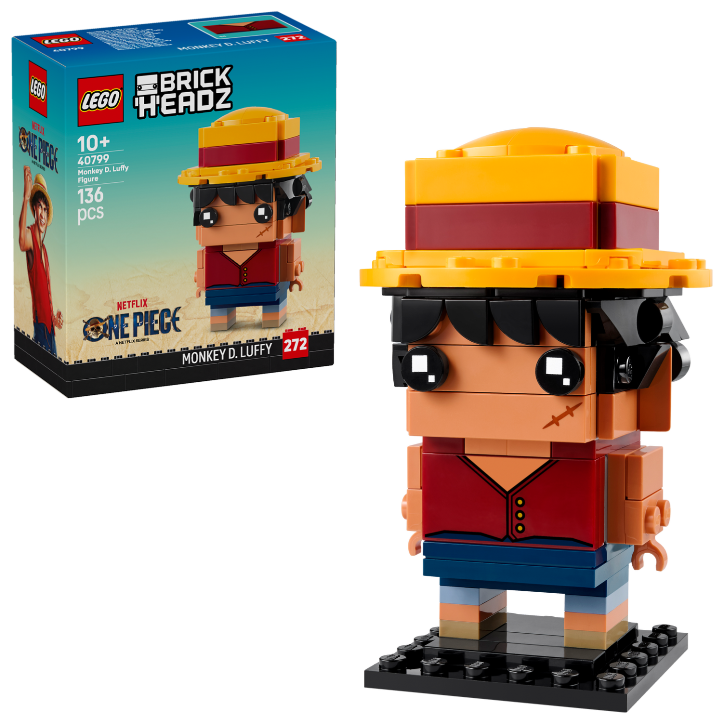 - LEGO® BrickHeadz™ Monkey D. Luffy Figure – Fans can recreate scenes from ONE PIECE when they build, play with and display this fun, collectible character