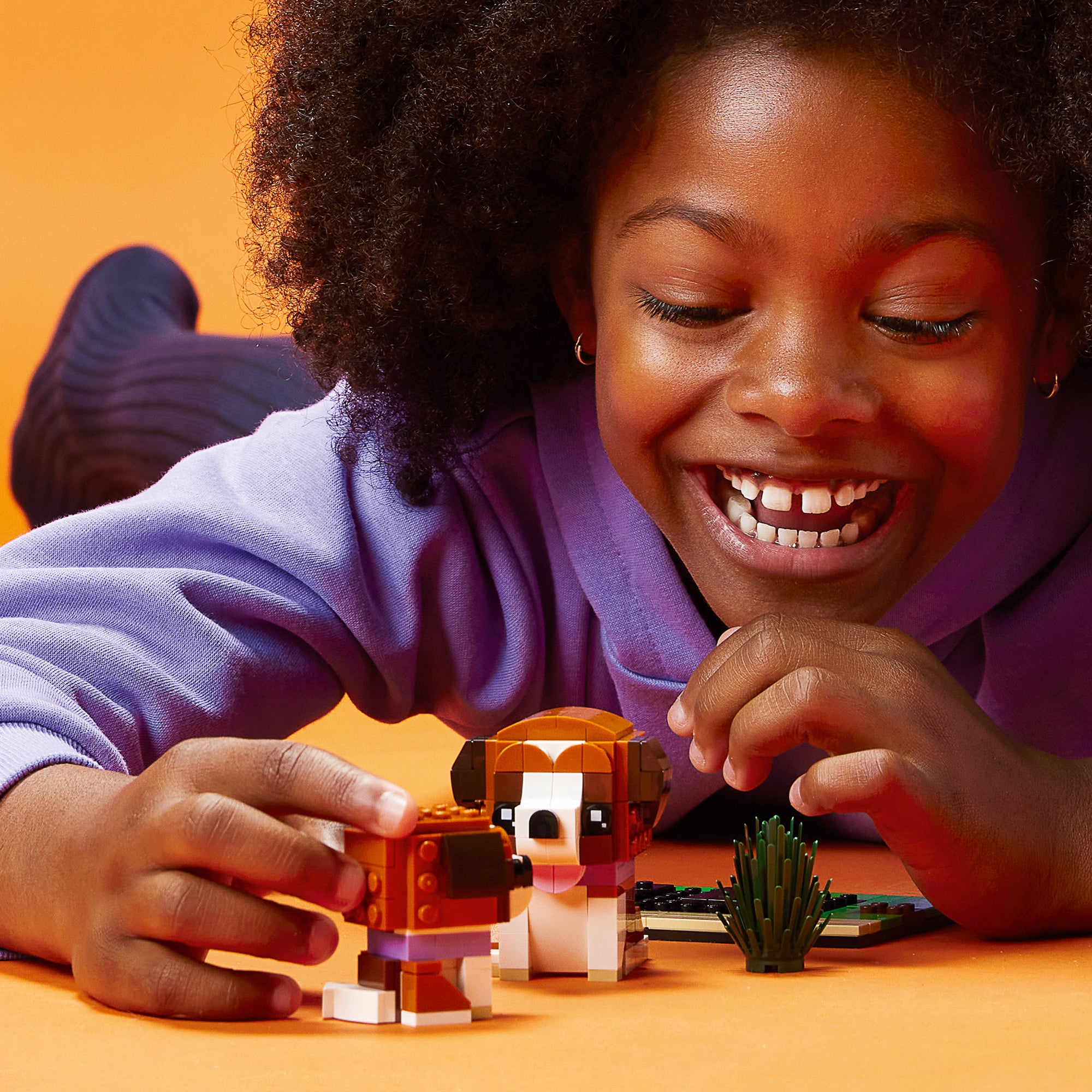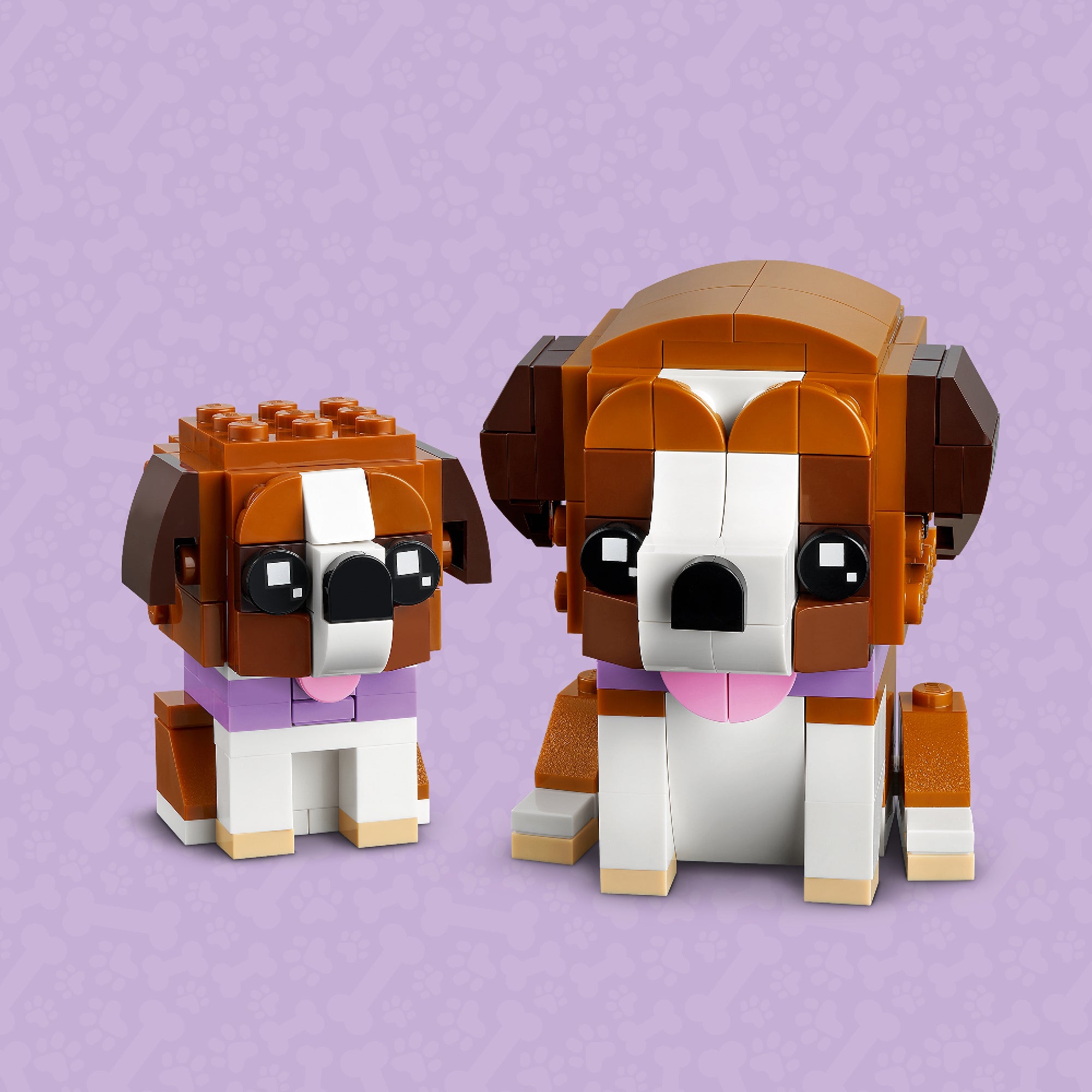 - St. Bernard (40543) dog and puppy in LEGO® BrickHeadz™ form – Two buildable models let kids aged 8 and up enjoy fun pet action