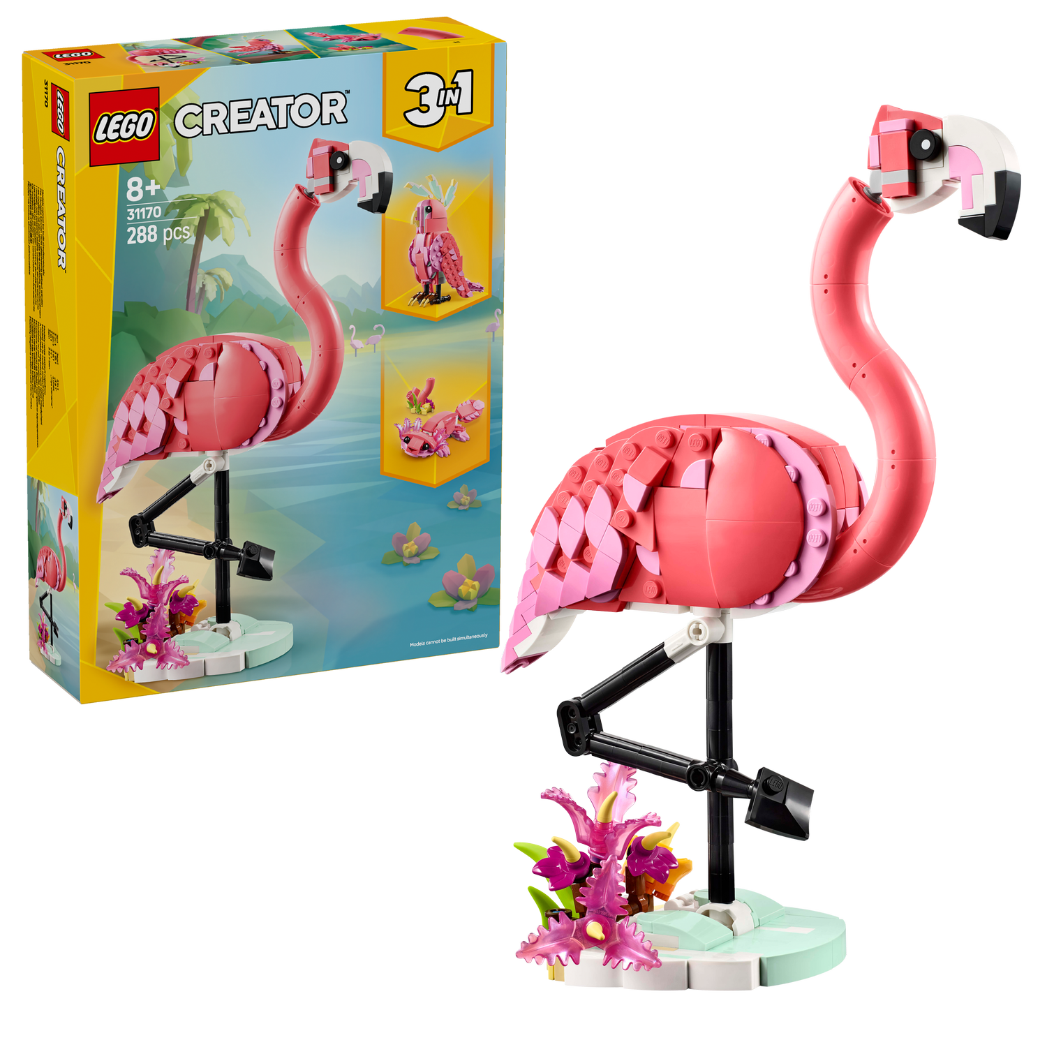- 3 wild animal building options in 1 box – The LEGO® Creator 3in1 Wild Animals: Pink Flamingo toy set lets girls and boys aged 8 and up build and rebuild 3 different animal figures with the same bricks