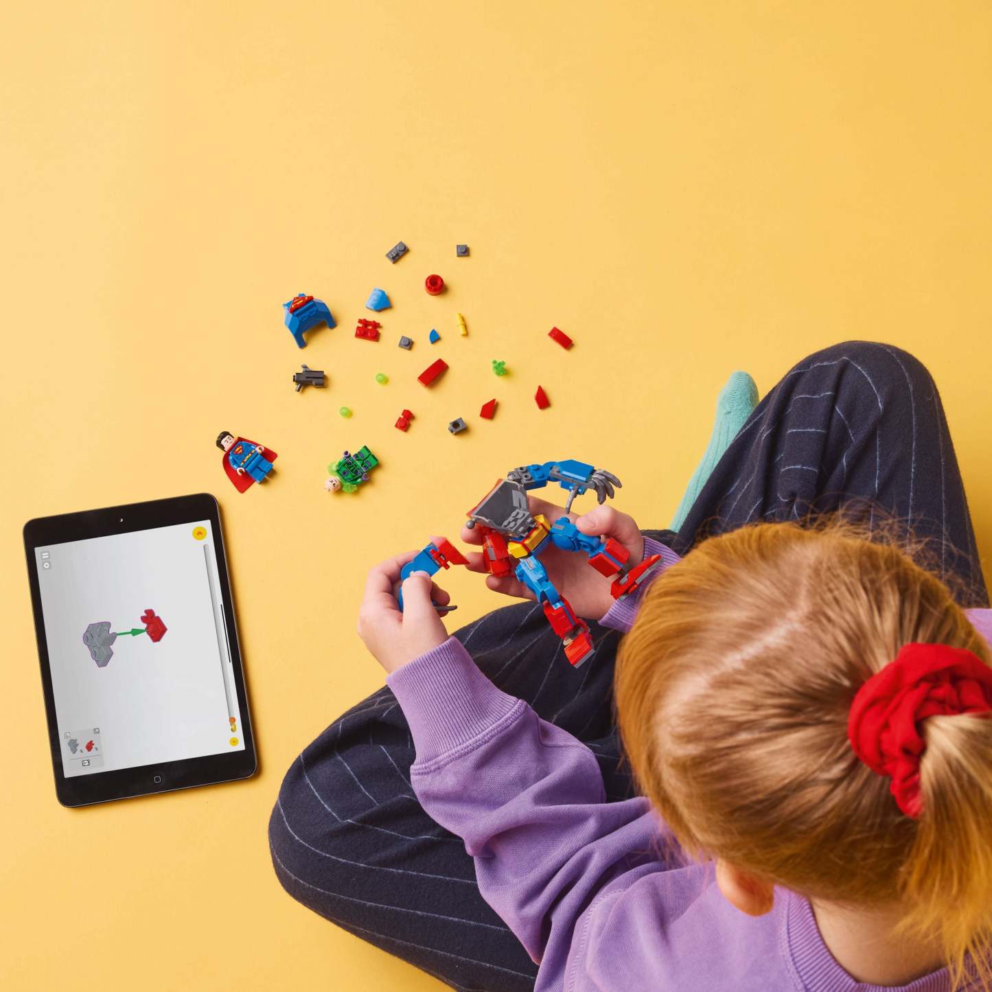 This LEGO DC Superman playset comes with 2 minifigures: Superman with a fabric cape and reversable head showing alternative expressions, and Lex Luthor with a stud shooter and a Kryptonite™ crystal. The buildable mech has movable arms, legs and fingers. The torso opens to reveal a cockpit where the Superman minifigure can sit. On the mech’sback are 2 adjustable thrusters that allow the mech to ’fly’. For added digital fun, builders can zoom in, rotate models in 3D and track their progress using the fun, intuitive LEGO Builder app.