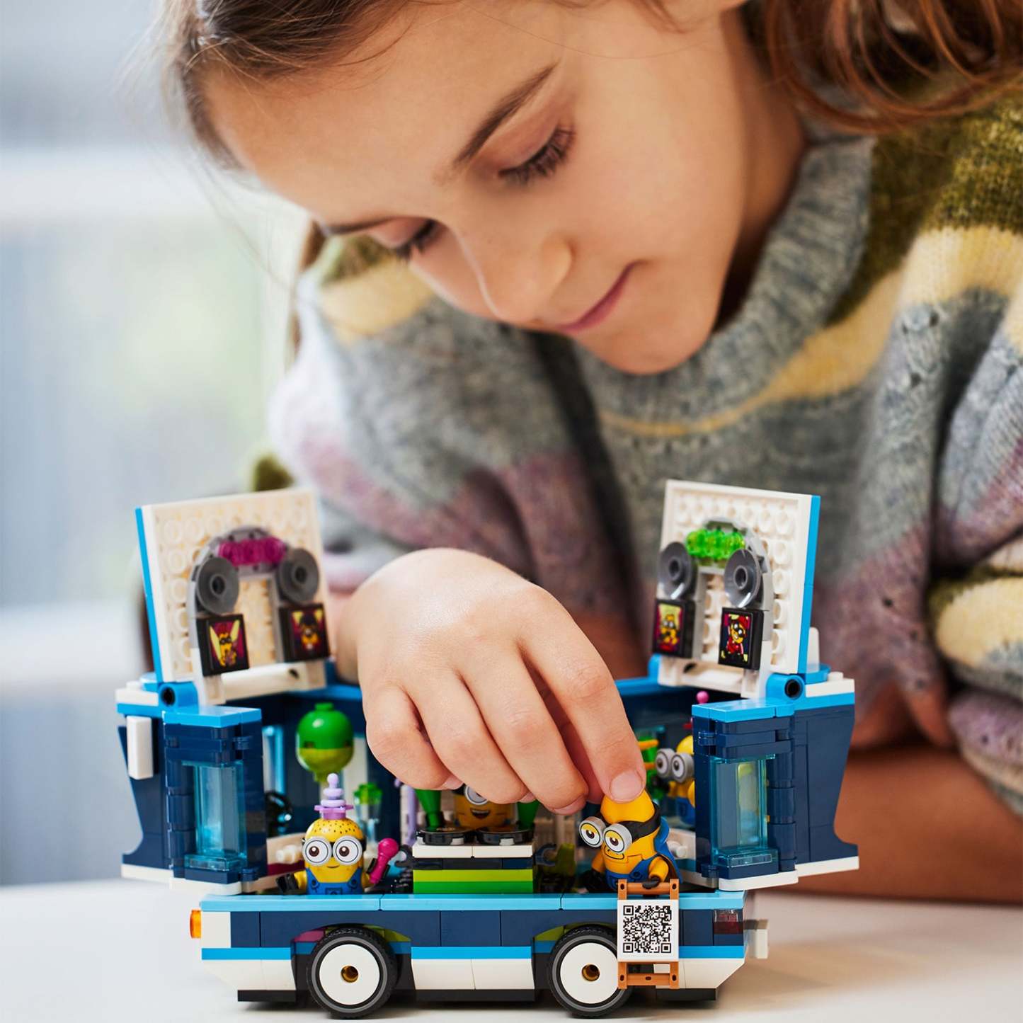 Give fans of Minions toys and kids with a passion for vehicles 2in1 fun with LEGO® Despicable Me 4 Minions’ Music Party Bus (75581). This creative set for kids features a push-along bus toy that opens to reveal a mega-fun, Minion party playset. It’s a versatile movie toy for boys and girls aged 7+ and fans of Illumination’s Despicable Me 4. The set includes 4 Minion figures: Phil, Mel, Dave and high-flying Mega Minion, Gus, who makes his first appearance in the Despicable Me 4 movie. The bus has a driver’s seat and a bar on the roof that’s ideal for Gus to hang onto. It splits open halfway down one side and the roof lifts to reveal a dance floor, DJ station, electric guitar, piano, microphone, lights, speakers and a hot tub! Many elements detach to expand play beyond the bus. This fun toy for kids bursts with bright colours and cool accessories, including a flag, balloon, ice cream, hats, drinks, lights, speakers and screens. Kids can also enjoy digital fun with the LEGO Builder app.