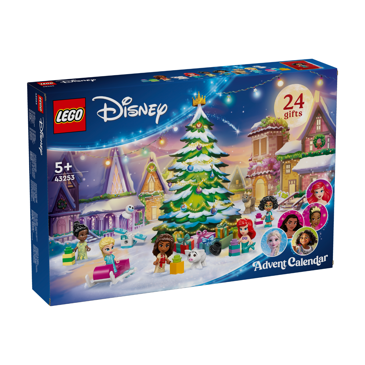 Start the holiday countdown for kids aged 5+ with the fun Christmas Advent Calendar 2024 (43253) full of Disney gifts. This building set for kids includes Elsa, Tiana, Ariel, Moana and Mirabel LEGO® ǀ Disney micro-doll figures, plus LEGO ǀ Disney Pua, Snowgie and adorable baby reindeer Sven characters. Behind every door is a character or mini build to help deliver a daily dose of holiday cheer and magic.