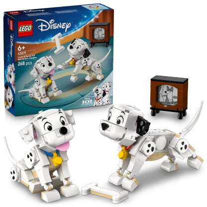 Thrill kids or animal fans aged 6 years and up with the Lucky & Penny 101 Dalmatians Puppies (43271) in this LEGO® ǀ Disney building toy. Packed with play options, the building toy includes 2 Dalmatian puppy characters from the Disney classic 101 Dalmatians, plus a brick-built toy bone and a small TV. The LEGO ǀ Disney puppy characters have movable heads, legs and tails, and can be posed in a variety of ways.