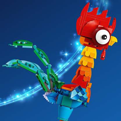 - Buildable display toy – Features a brick-built, posable construction model of Moana’s chicken companion Heihei, along with a display stand with decorative flowers and a nameplate