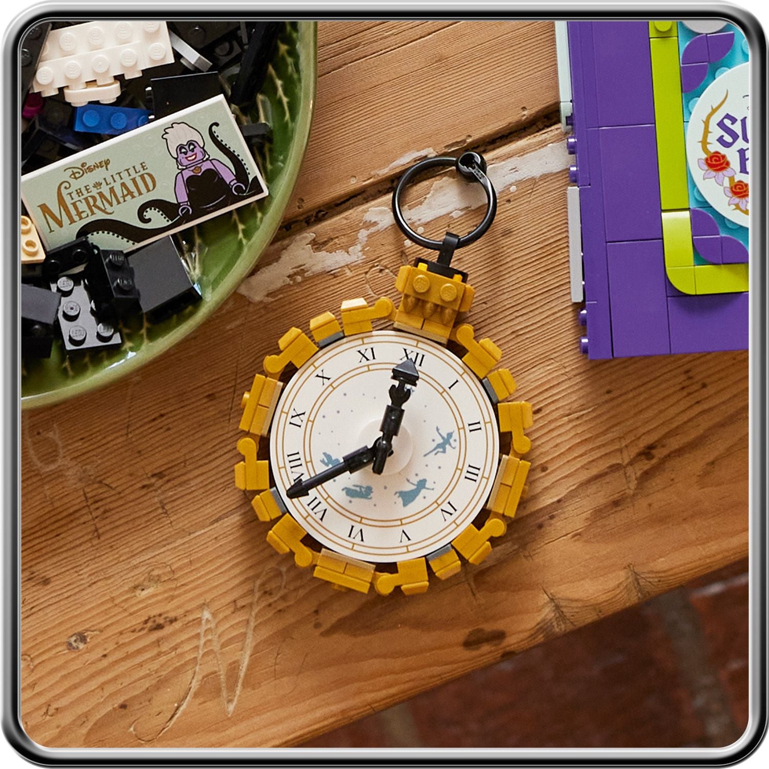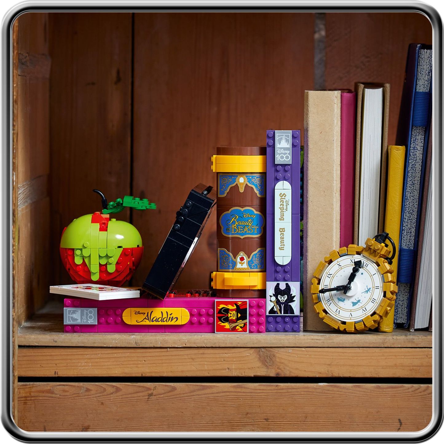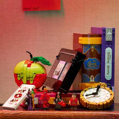 - Build and display – This Disney-memorabilia-filled set has 1,540 pieces that create several distinct items, including 2 VHS ‘cases,’ a video ‘tape’, poison apple, playing card, book and a pocket watch