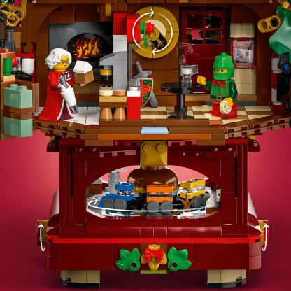 - Building kit for kids’ fun or family activities – The tree features 4 rooms: a kitchen, Santa’s workshop, a canteen and an entertainment room with games for the elves, plus a base with a train inside