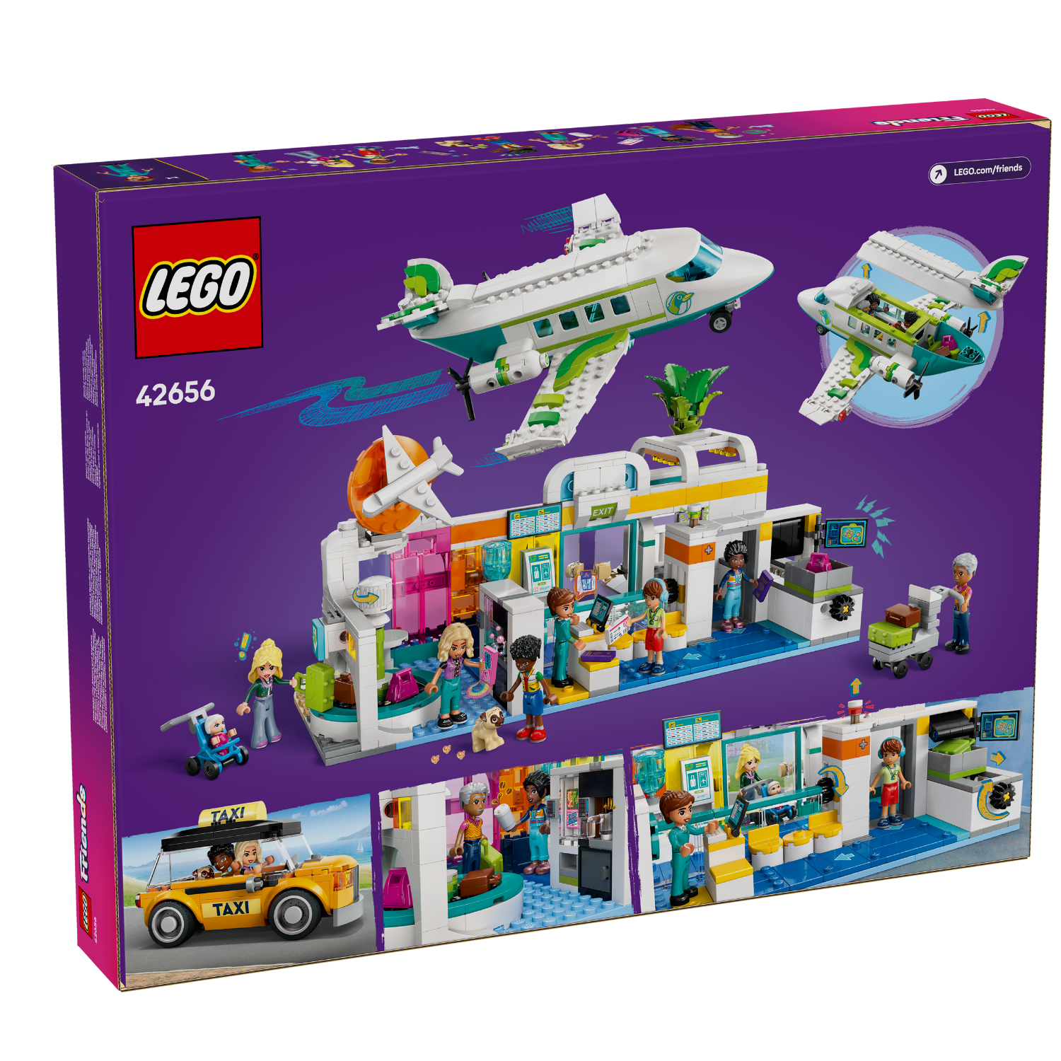 This building kit lets young imaginations take flight as kids aged 8 and up imagine travel adventures with the LEGO® Friends Heartlake City Airport and Airplane playset (42656). The set features a buildable passenger airplane, airport, taxi, 2 luggage carts and 8 LEGO Friends characters – including a baby – plus a dog figure.
