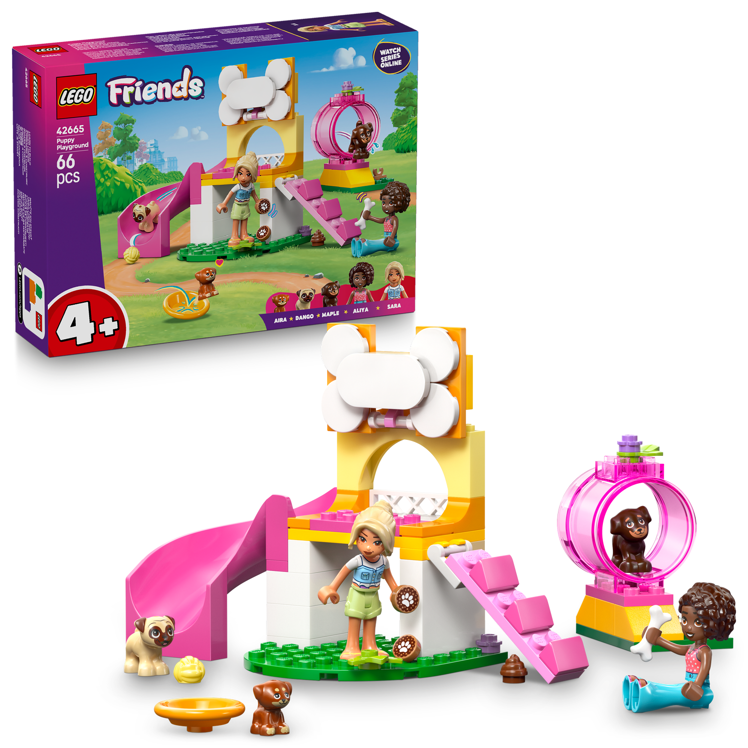 - Building kit packed with puppy power – This kids’ LEGO® Friends Puppy Playground for girls and boys aged 4 and up features a buildable playground, 2 minidolls, 3 dog figures and accessories