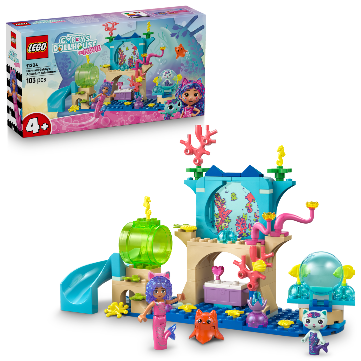 - LEGO® Gabby’s Dollhouse playset – Kids can recreate stories with Gabby and role-play aquarium adventures of their own
