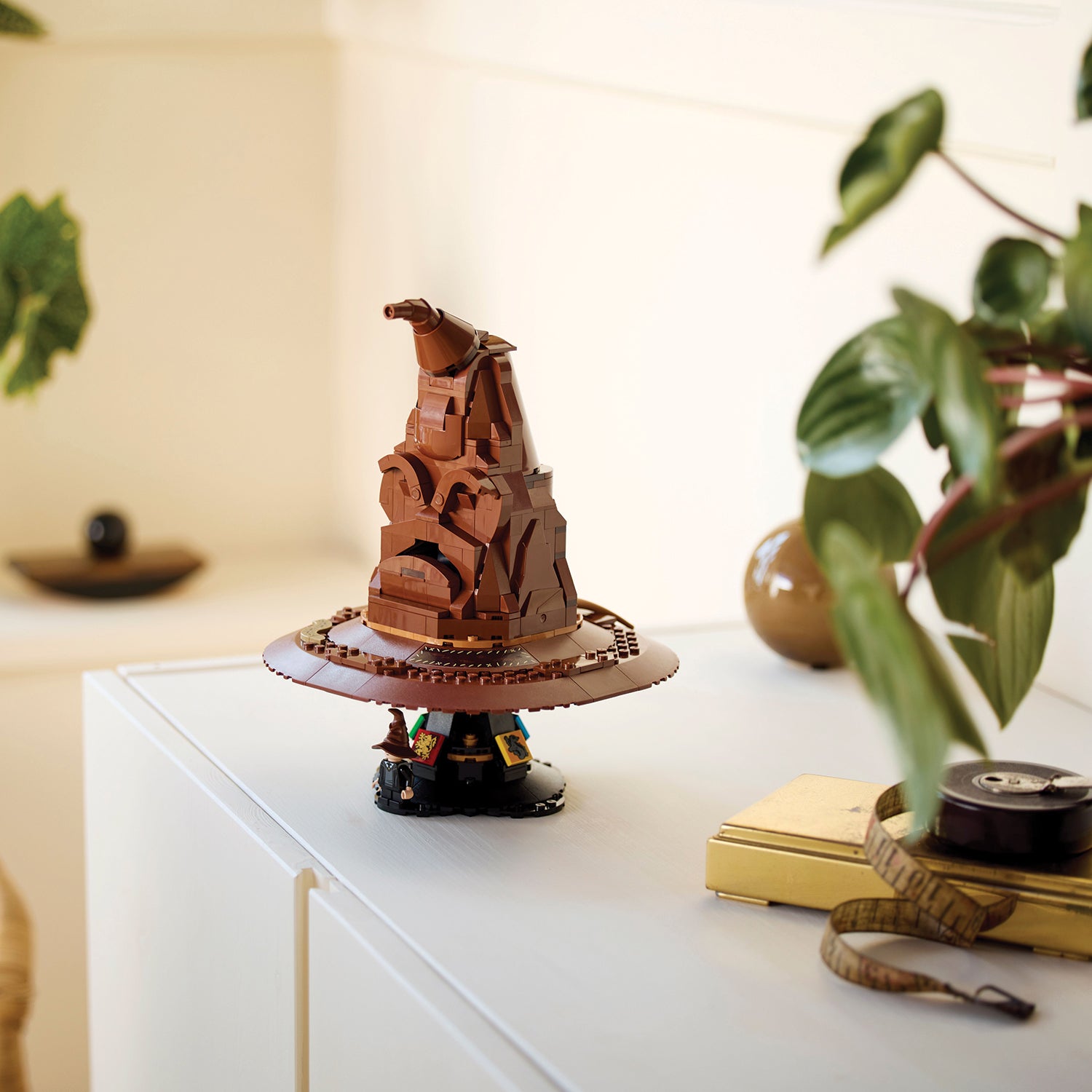 Place the hat on the stand, which features Gryffindor™, Slytherin™, Hufflepuff™ and Ravenclaw™ crest decorations. This unique LEGO set also includes a Harry Potter character minifigure wearing a Sorting Hat to complete a special display.