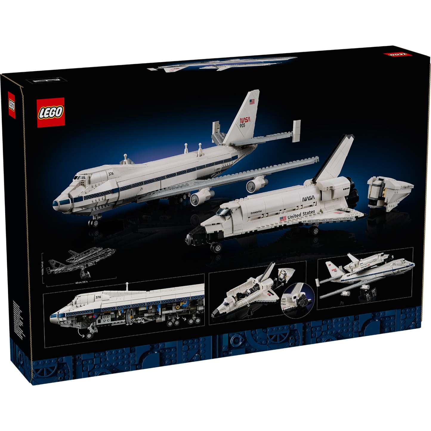 - What’s in the box? – Everything you need to construct a detailed LEGO® replica model of the Boeing™ 747™ carrier aircraft and NASA Space Shuttle Enterprise