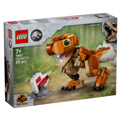 Exciting adventures, nurturing and care-play await young dinosaur fans aged 7 and up in this Little Eatie: T. rex (76967) LEGO® Jurassic World dinosaur toy model full of play-and-display possibilities. First, young dinosaur-tenders can assemble this LEGO dinosaur building kit, before diving into play as they explore the prehistoric world with Little Eatie from Jurassic World: Camp Cretaceous. This Jurassic World: Chaos Theory toy set features a brick-built T. rex figure with an interactive chomping jaw and movable tail and limbs that allow for different poses. Once play is over, the dinosaur toy for boys, girls and fans can be displayed on a shelf or desk.