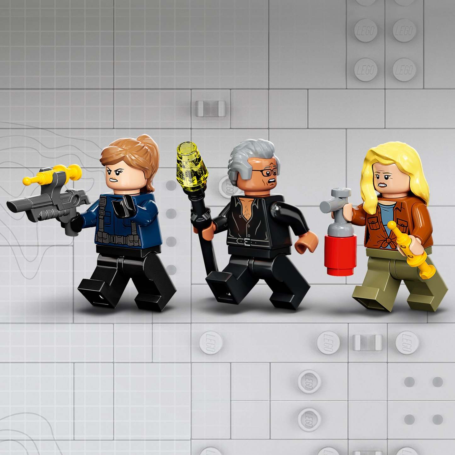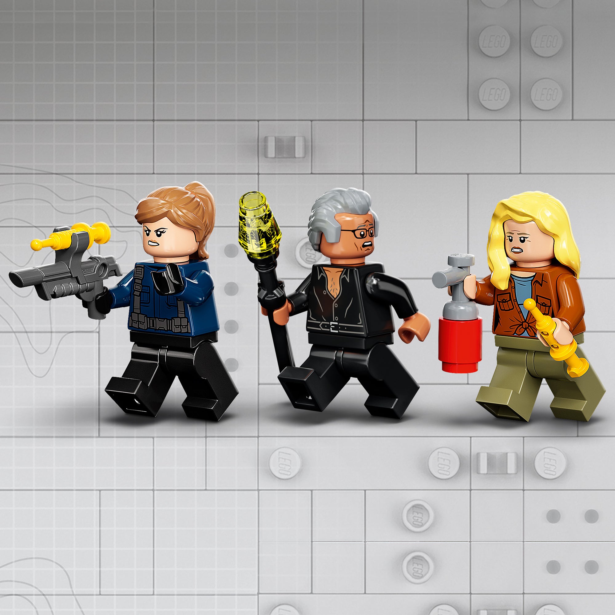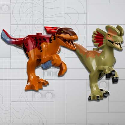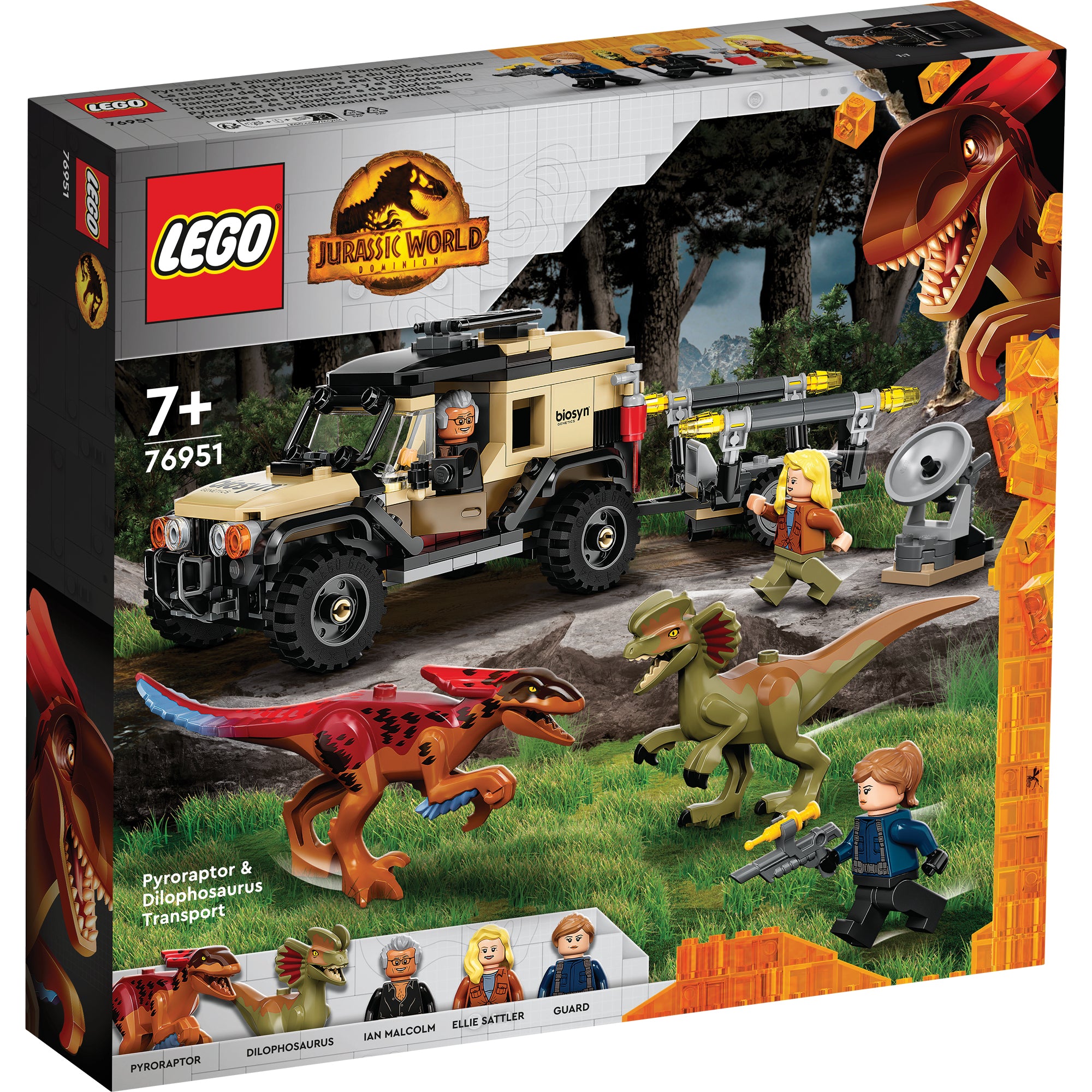 - 3 minifigures and 2 toy dinosaurs – Ian Malcom, Dr. Ellie Sattler and a guard, plus posable Pyroraptor and Dilophosaurus dinosaur figures to play out Jurassic World: Dominion movie scenes