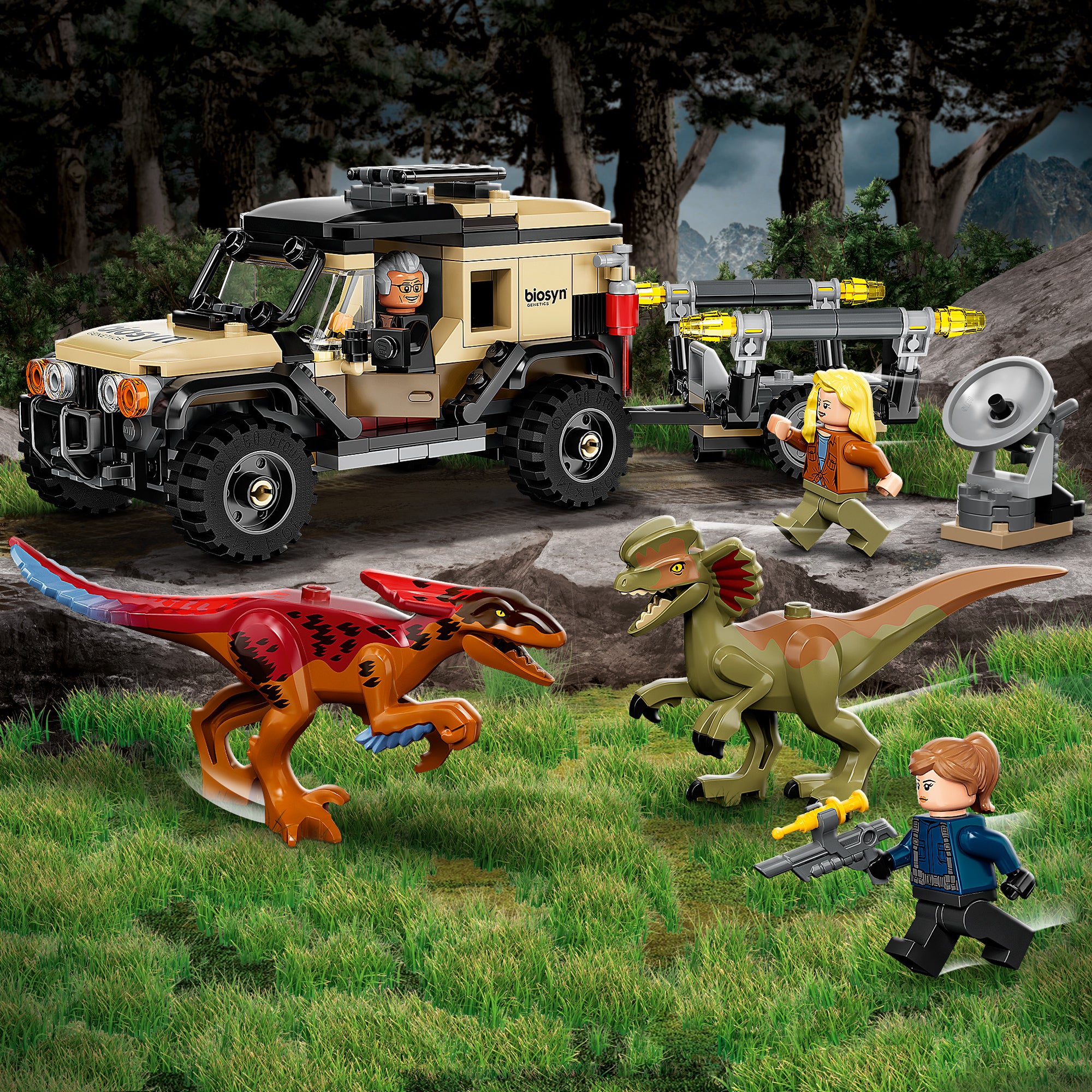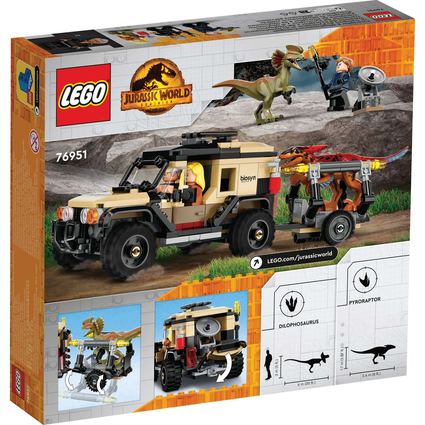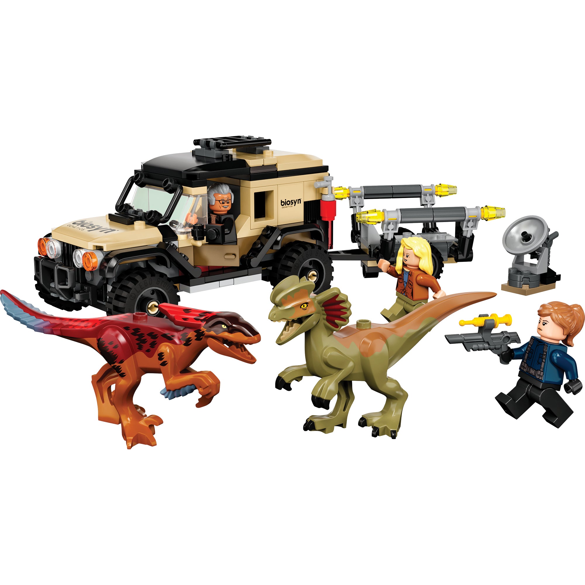- Off-road vehicle and 2 toy dinosaur figures – Action-packed playtime adventures await kids with this Pyroraptor & Dilophosaurus Transport (76951) playset