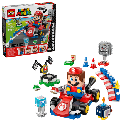 - Collectible Nintendo® LEGO® sets – Explore the LEGO® Super Mario™: Mario Kart™ range (sets sold separately) and find other toy vehicles and characters to race against and create stories with
