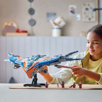 - LEGO® Marvel spaceship model – Authentic accessories, such as weapons for battle action and a tape deck for rocking out like in the movies, encourage kids to explore imaginative role play
