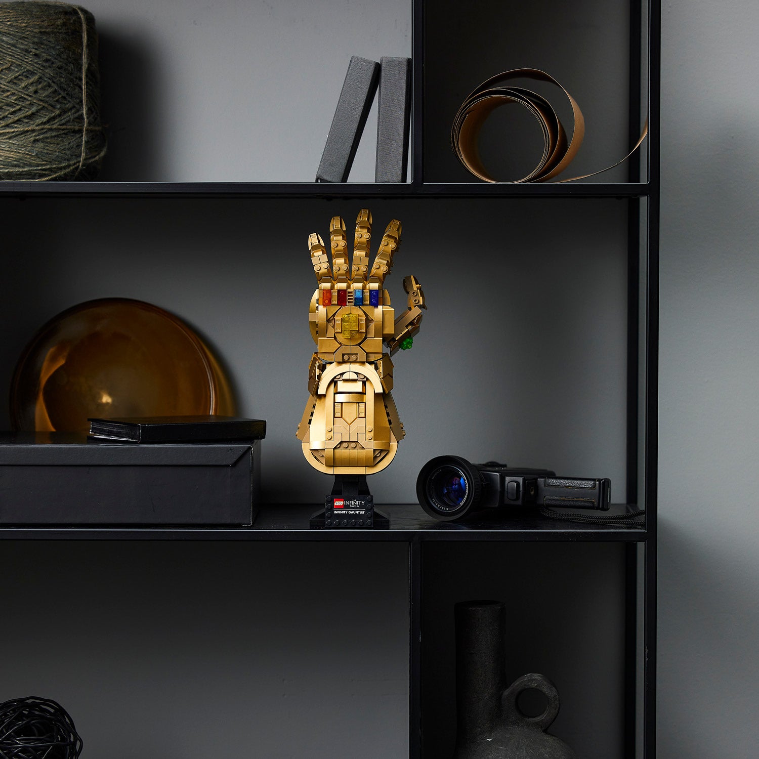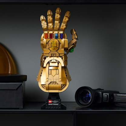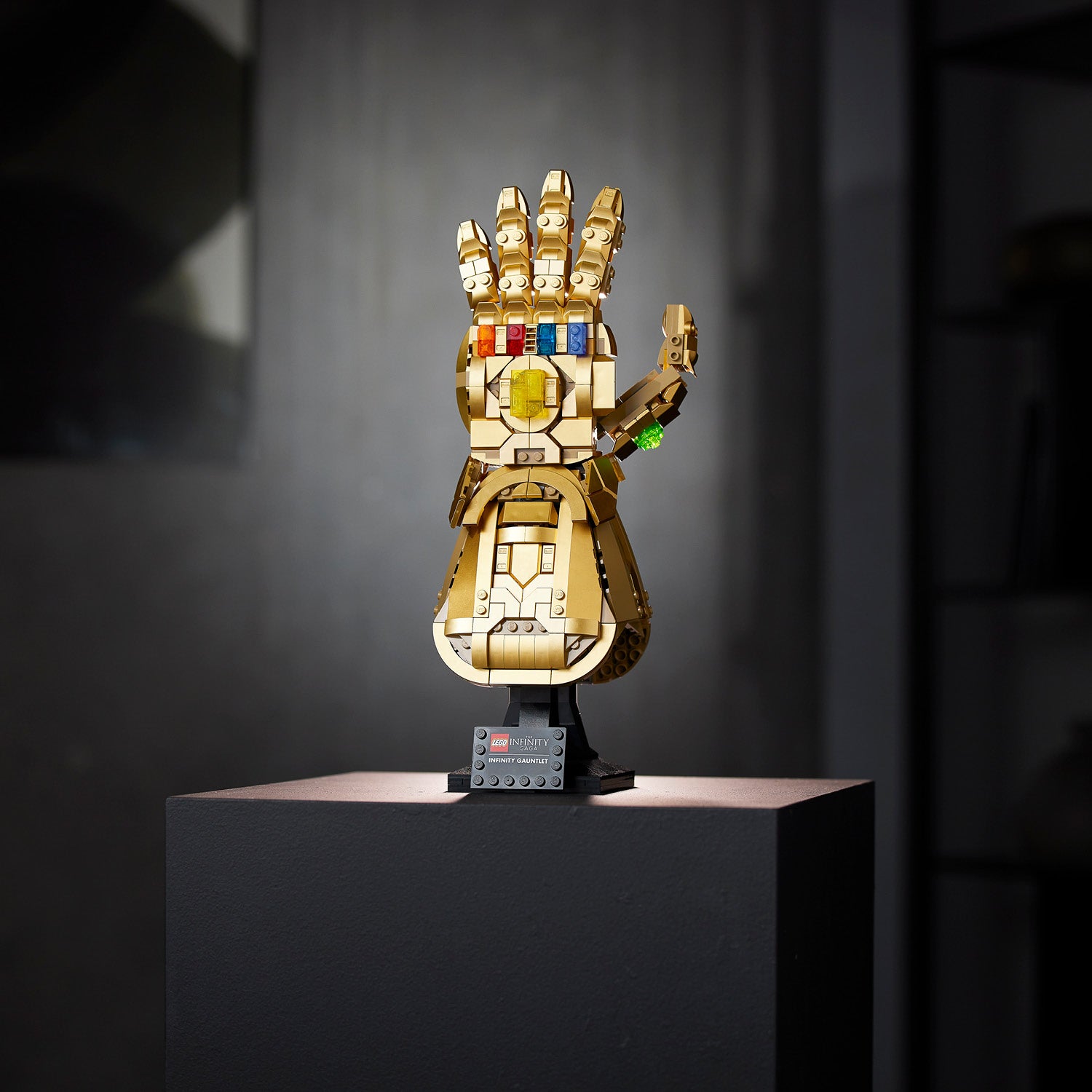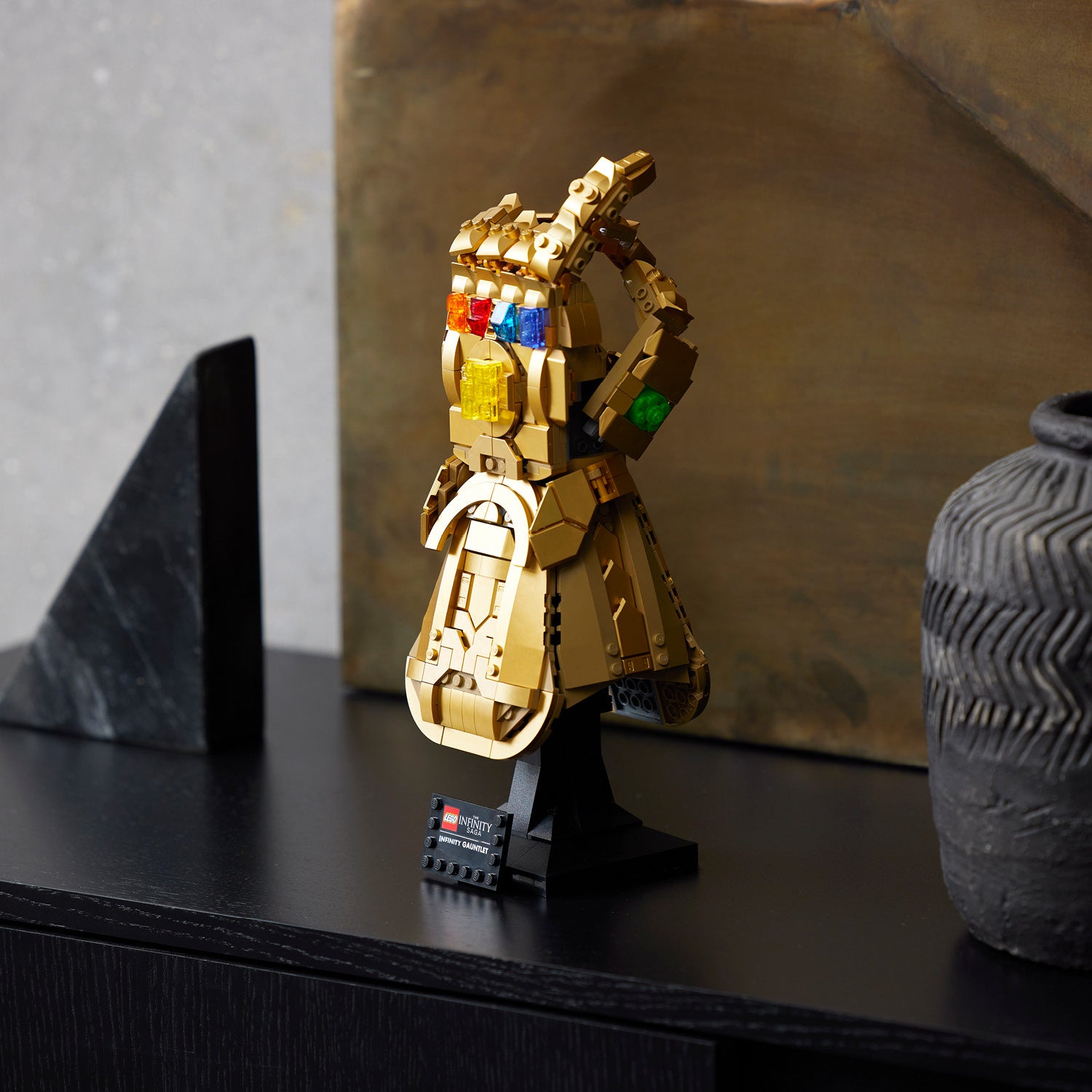 - This authentic, golden LEGO® brick recreation of the iconic Infinity Gauntlet includes colourful Infinity Stones and a sturdy stand featuring a descriptive tablet.