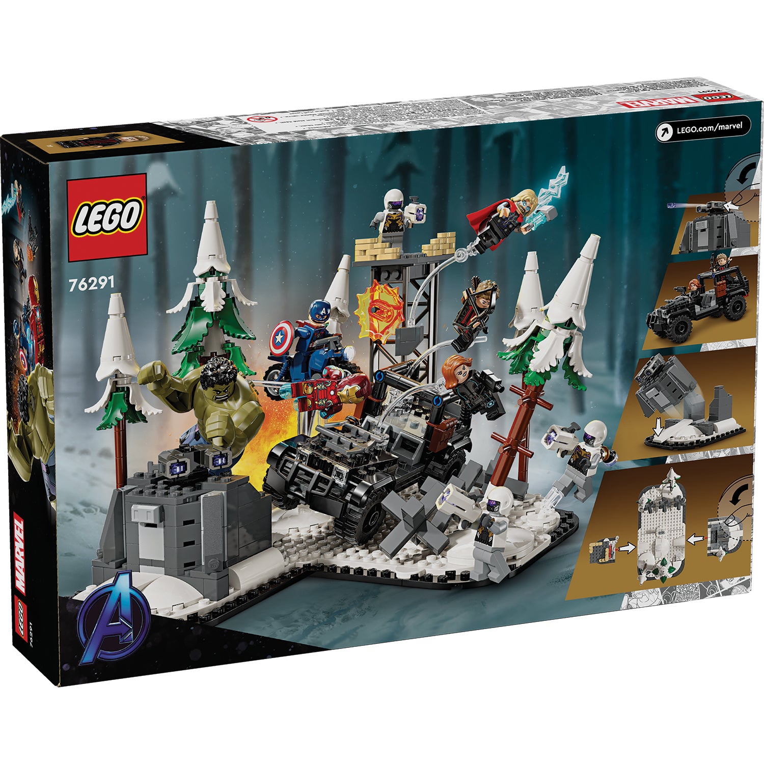 - Collectible Avengers LEGO® Marvel characters – This play-and-display buildable toy comes with Black Widow, Captain America, Iron Man, Thor and 3 Hydra Trooper minifigures, plus a larger Hulk figure
