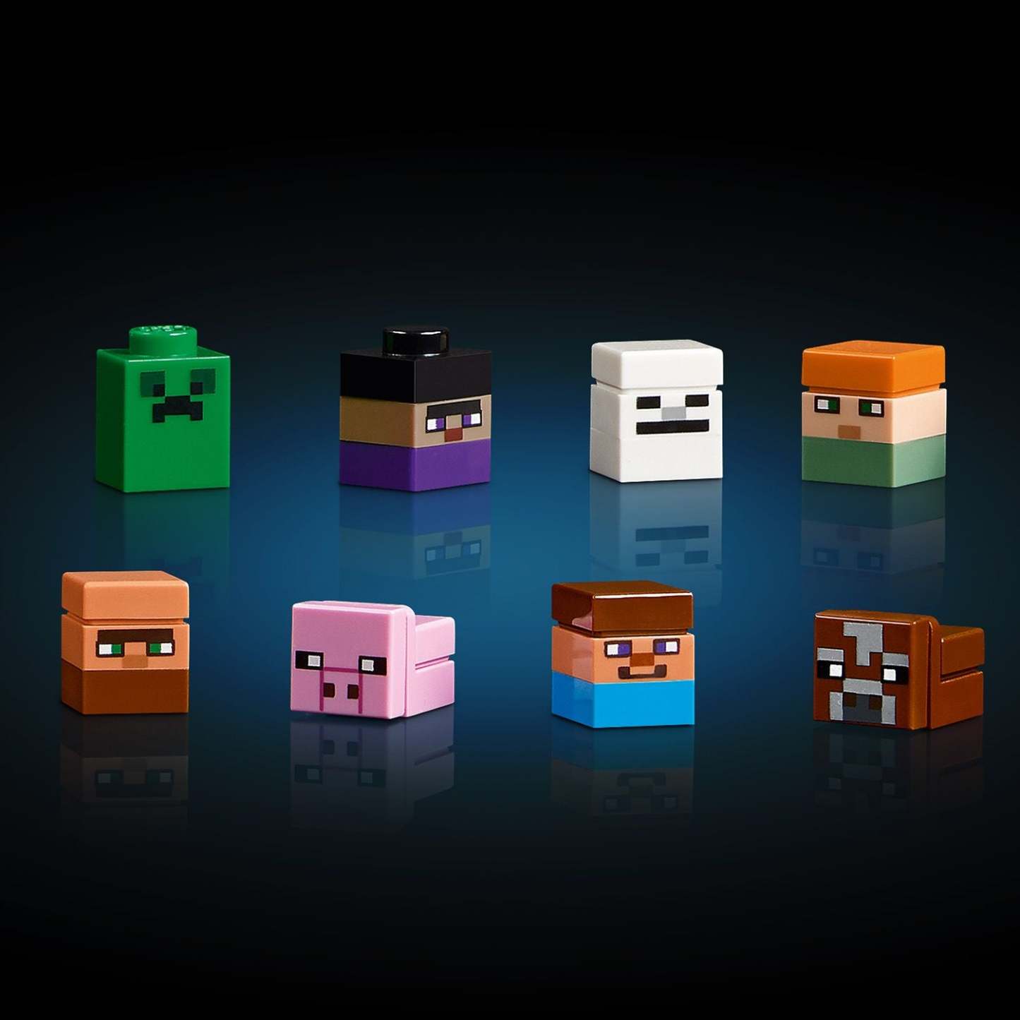 - Build-and-display Minecraft® model – 5 mini builds and 8 microfigures (Steve, Alex, a skeleton, witch, Creeper™, villager, cow and a pig) detach from the model for multiple display possibilities
