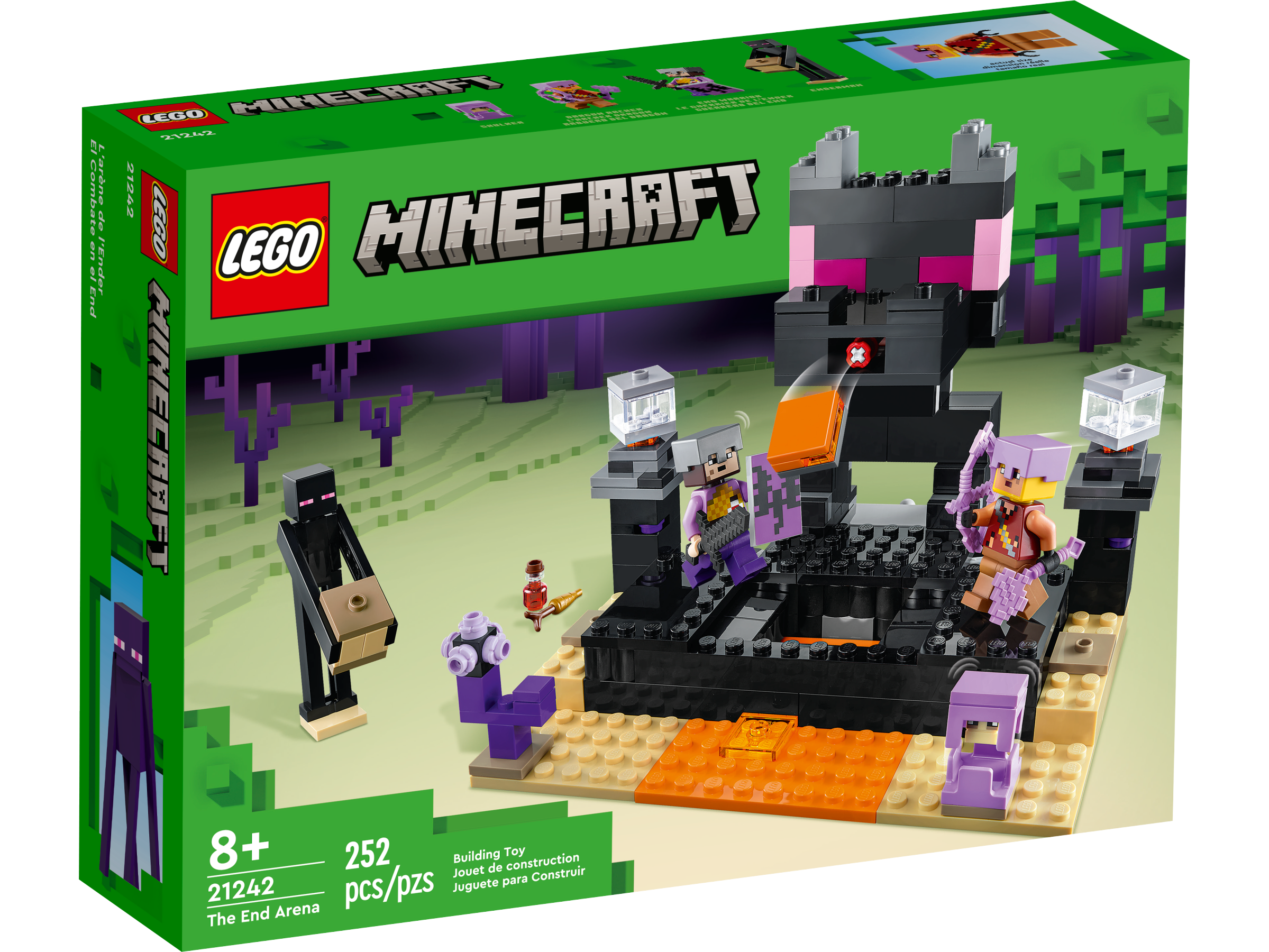 Minecraft® battles don’t come more epic than when they take place in LEGO® Minecraft The End Arena (21242). Players aged 8 and up will need all their Minecraft skills to survive the action in this fun, hands-on set.