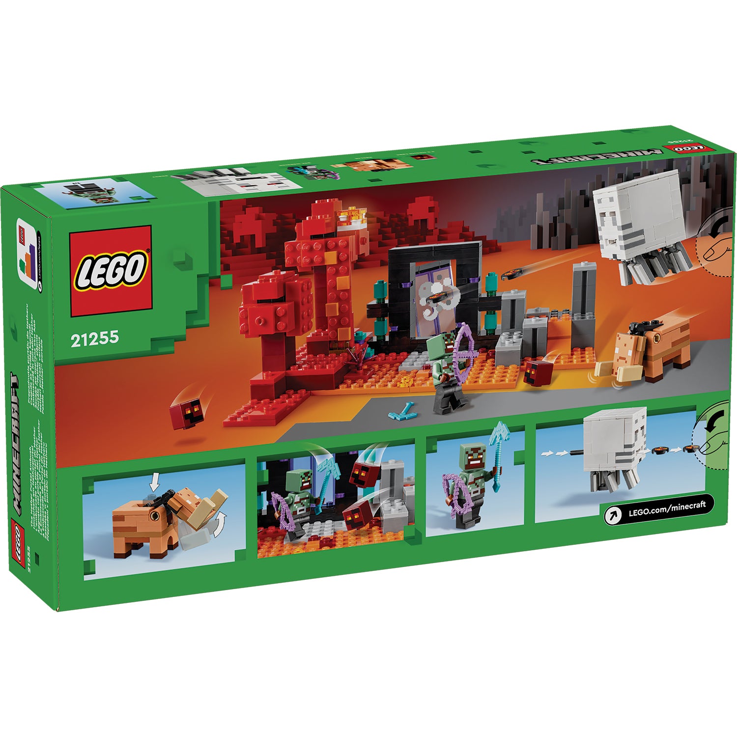 - LEGO® Minecraft® Nether portal toy – This Minecraft adventure set for gamers, kids, boys and girls aged 8+ features buildable action scenes with iconic Minecraft characters