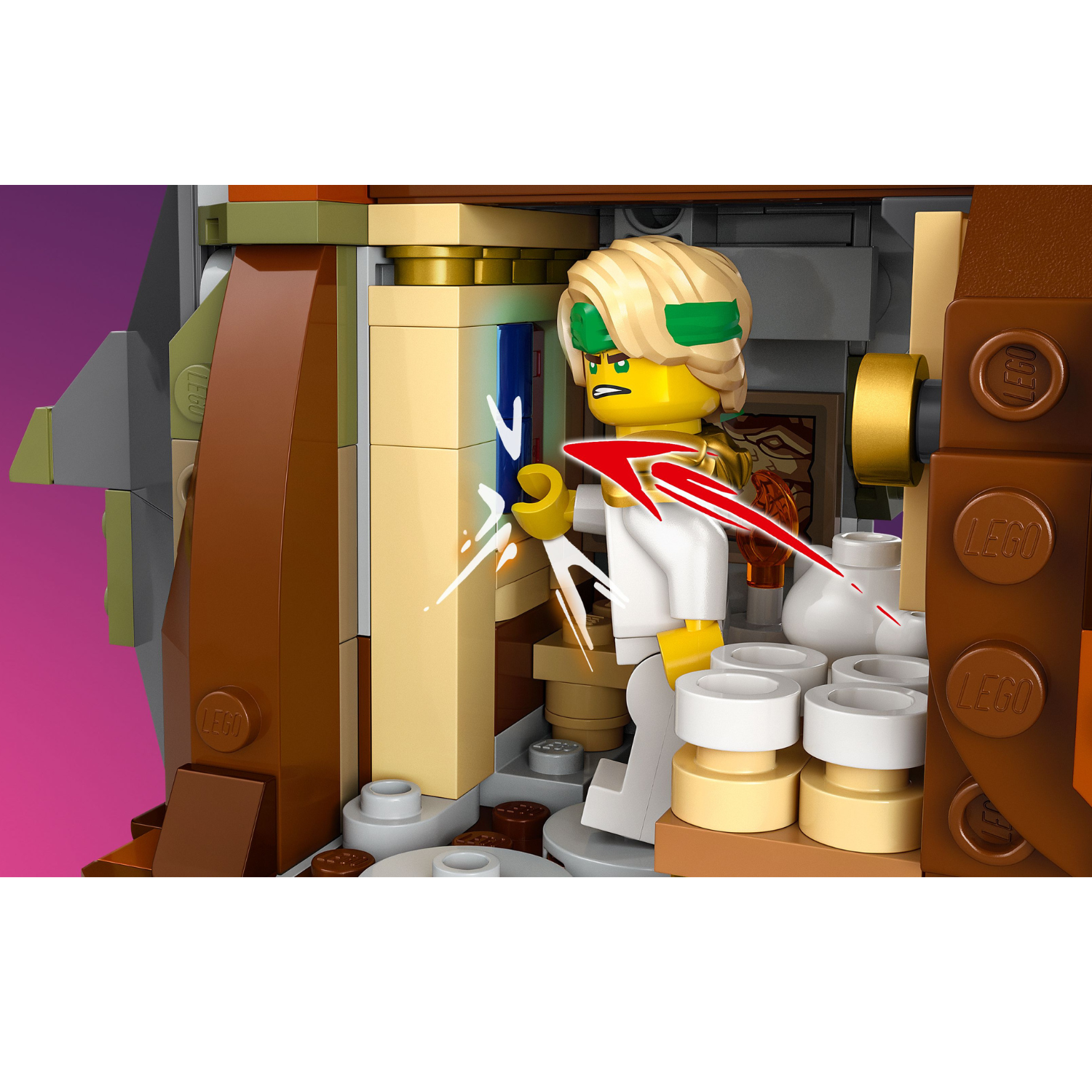 This buildable model comes with 6 NINJAGO character minifigures: Master Lloyd with a staff accessory, Master Wu with a spear accessory, Nya with 2 katana sword accessories and a pair of ninja sai, Kai with 2 katana sword accessories and a sword accessory, Euphrasia with a staff accessory and Lord Ras with his hammer. Kids have all they need to play out exciting ninja battles.