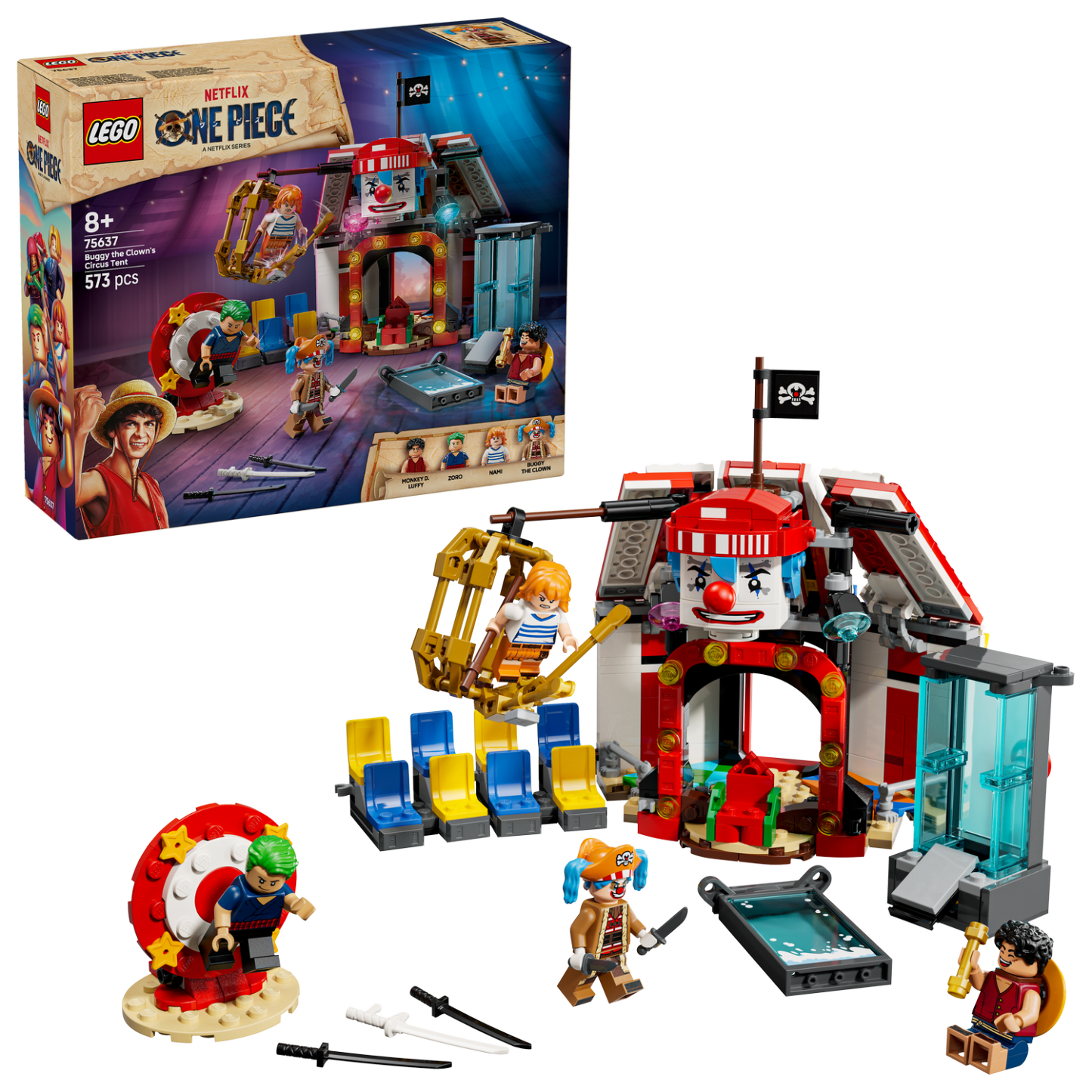 LEGO® ONE PIECE Buggy the Clown’s Circus Tent (75637) takes kids on a ONE PIECE circus adventure. This LEGO anime toy for boys and girls aged 8 and over has lots of accessories to help kids role-play their favourite scenes from the ONE PIECE live action series and to inspire them to create imaginative adventures of their own.