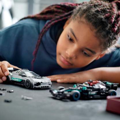 - LEGO® recreations of the Mercedes-AMG F1 W12 E Performance and Mercedes-AMG Project One – 2 replica models for kids and car fans with a passion for vehicles that push the limits of race car innovation