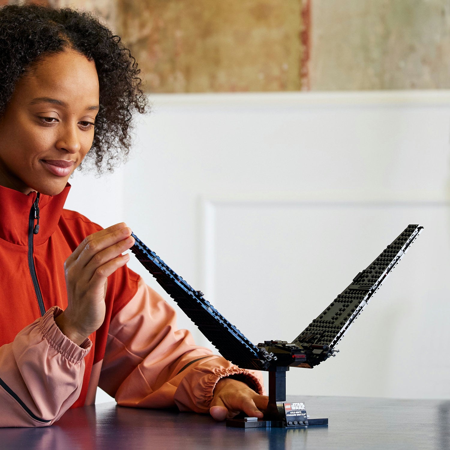 - Buildable starship model kit for adults – Build your own mid-scale LEGO® Star Wars™ recreation of Kylo Ren’s Command Shuttle, first seen in Star Wars: The Force Awakens™