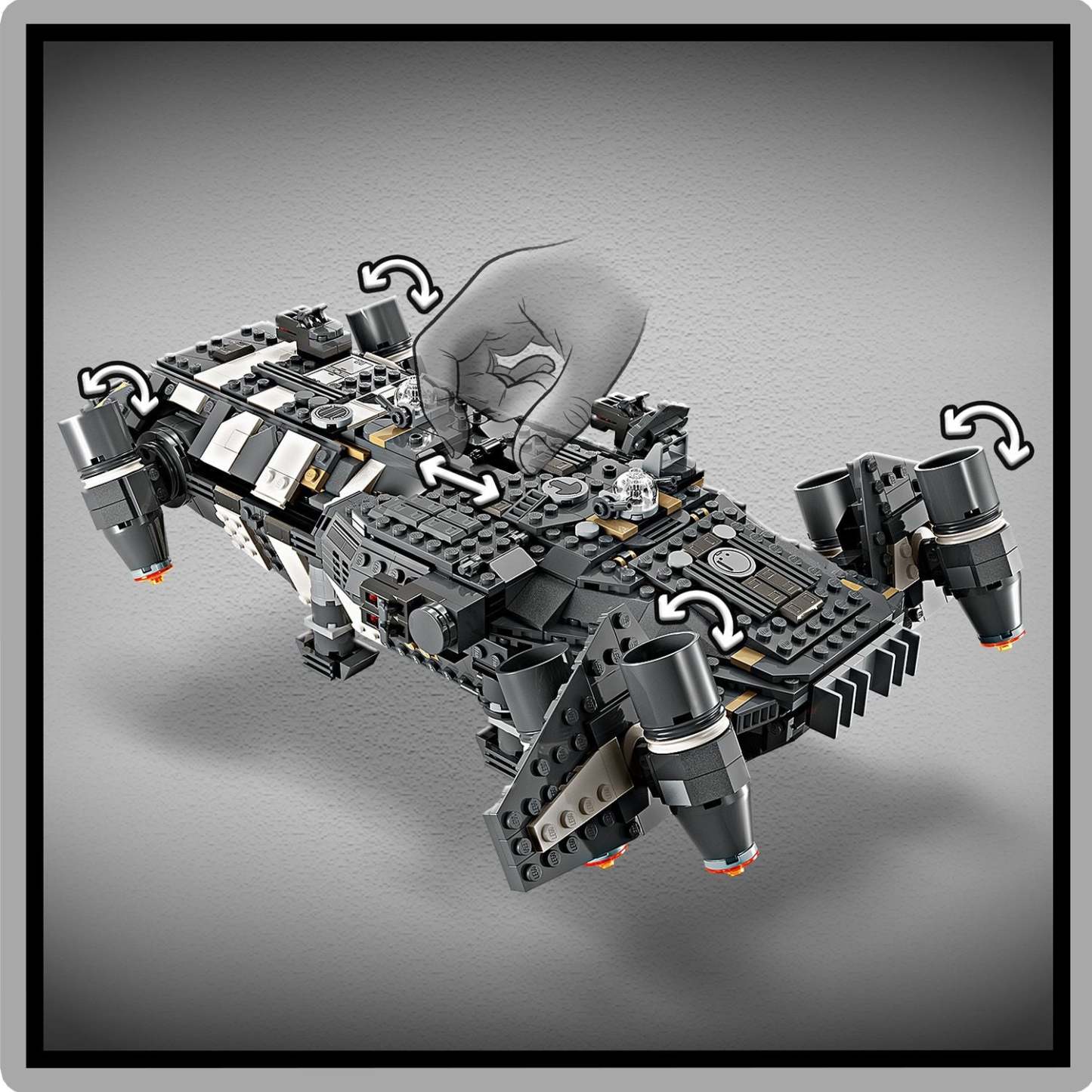 - Authentic features – A cockpit, compartment with seats for 4 LEGO® minifigures, rotating engines for landing/takeoff or flight, 2 stud shooters and 2 rotating turrets, each with 2 stud shooters