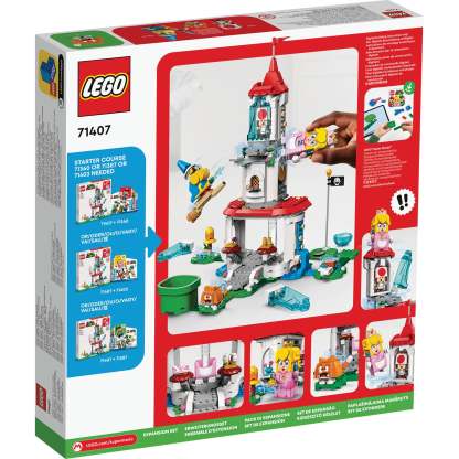 Kids can build a supercool LEGO® Super Mario™ level with the Cat Peach Suit and Frozen Tower Expansion Set (71407). It features a Cat Suit for LEGO® Peach™ (figure not included) to wear to climb the brick-built tower, and 3 LEGO toy figures: Kamek, Toad and a Cat Goomba. Players earn rewards by releasing the Coin Block from ‘ice’ and jumping on it, grabbing the yellow fruit, toppling Kamek from the tower (after activating the POW Block) and breaking Toad out of the ice enclosure. (Note: the 71360, 71387 or 71403 Starter Course is required for play.)