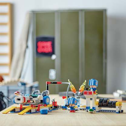 Let kids role-play as pit crew at Toad’s garage and prepare a B Dasher for racing action with this customizable LEGO® Super Mario™: Mario Kart™ toy playset (72035). A fantastic Nintendo® character gift idea for boys, girls and gamers aged 8 and up, the set features 2 Blue Toad toy figures in blue pit crew uniform, plus a working car elevator, a choice of Standard Tires or Blue Standard Tires and tools. The B Dasher has a shell shooter, and builders can also attach the horn and engine from the Customization Machines.