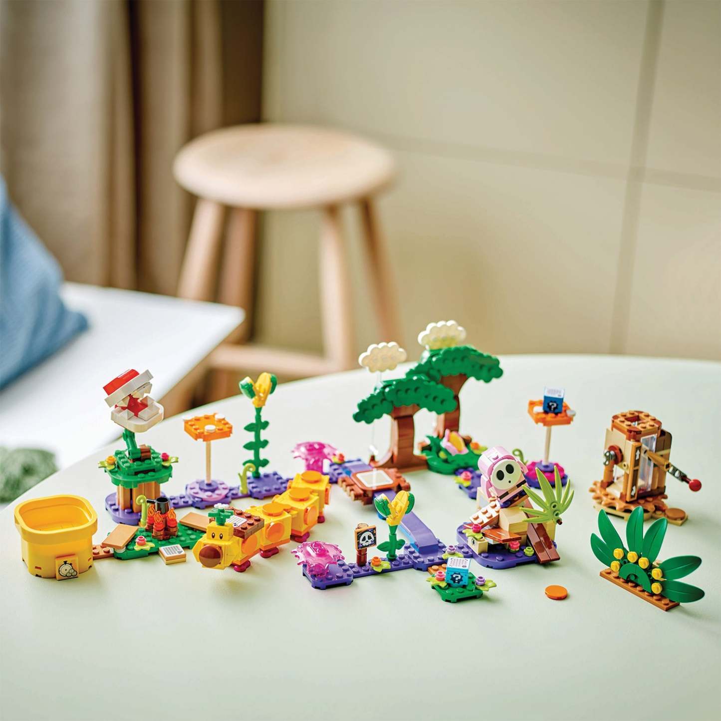 - Includes 3 brick-built LEGO® Super Mario™ toy figures – A Pink Shy Guy, Wiggler and Piranha Plant