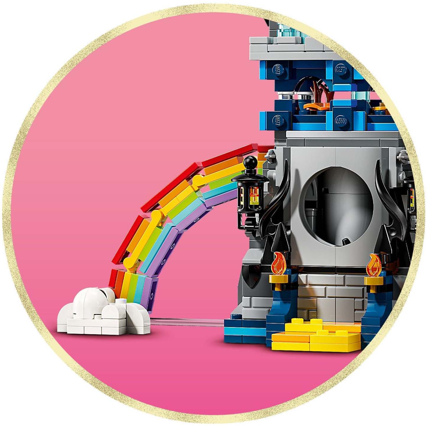 - Relive epic scenes – Hang with Glinda in the Emerald City bedroom and scour the hidden map, spin the turntable in the Kiamo Ko Castle playset and help Elphaba vanish over the LEGO® rainbow
