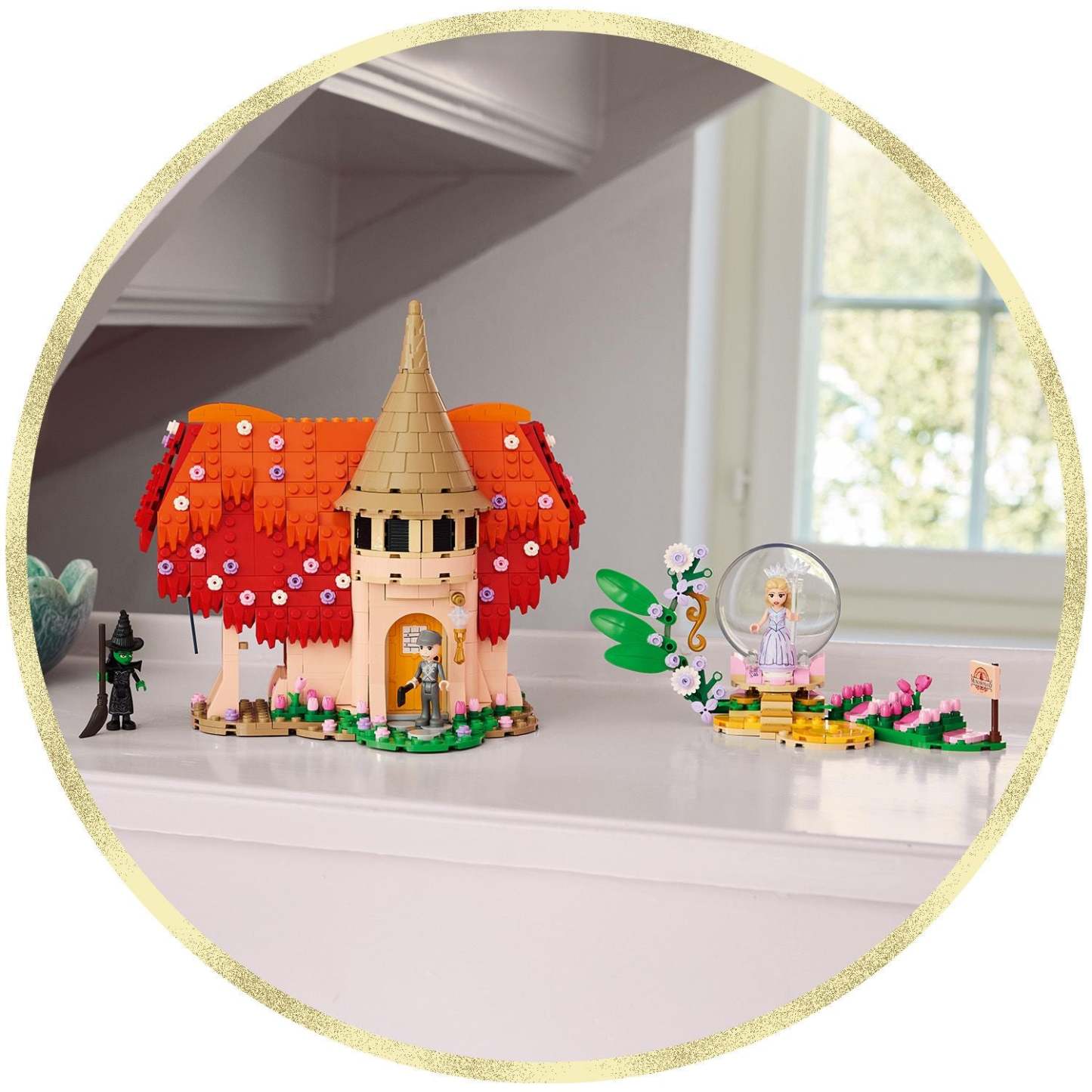 - Buildable playhouse toys to display – This kids’ room decor for girls, boys and Wicked fans includes a 2-storey LEGO® cottage with a beautiful brick-built red roof, plus Glinda’s iconic bubble throne