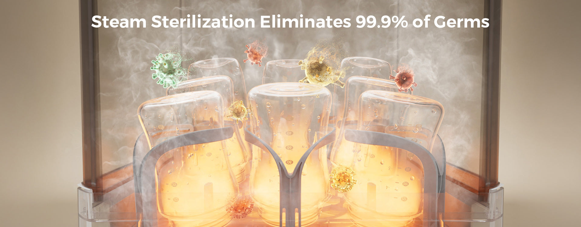Powerful 112,000Pa warm water sprays dissolve tough, dried milk residue.