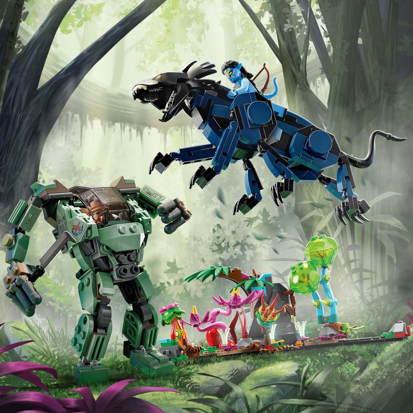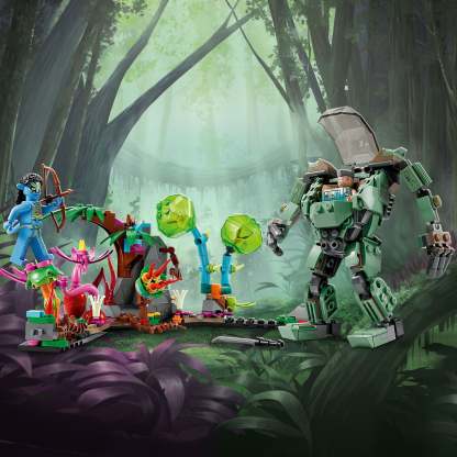 - What’s inside – This LEGO® set includes Neytiri and Colonel Miles Quaritch minifigures, a buildable AMP suit and Thanator figure, plus a buildable rainforest scene with glow-in-the-dark elements