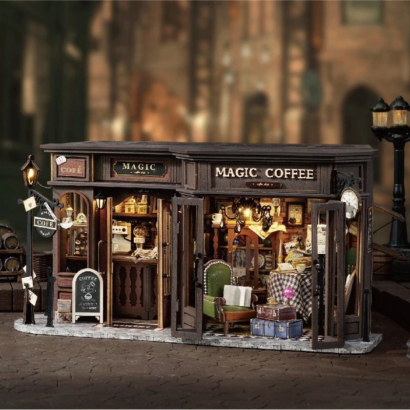 Step into a vintage café scene with the Retro Magic Coffee Shop DIY miniature kit. From neon signage to tiny espresso gear and warm LED lights, this book-nook-ready build turns calm evenings into a hands-on ritual—perfect décor and a thoughtful DIY craft gift.
