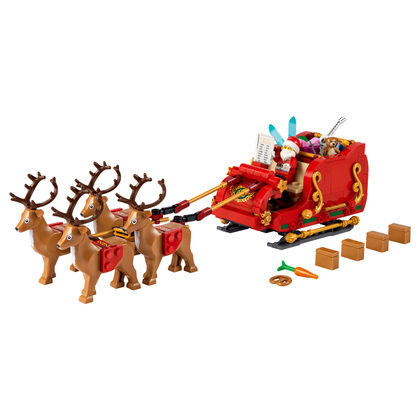 Guaranteed visit from Santa! LEGO® Santa’s Sleigh (40499) is the perfect pre-Christmas present to bring festive cheer to homes. Kids and grown-ups alike will love building and displaying the ornate sleigh, which comes with 4 reindeer figures.